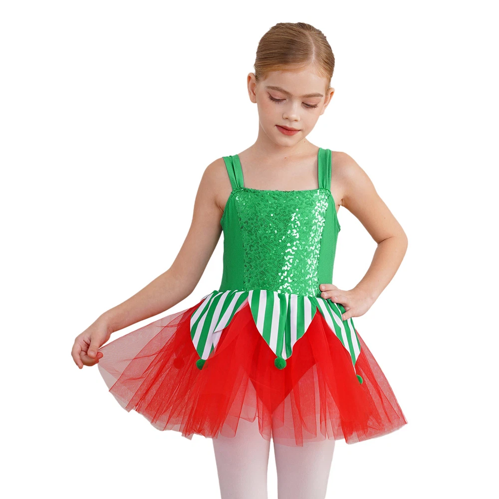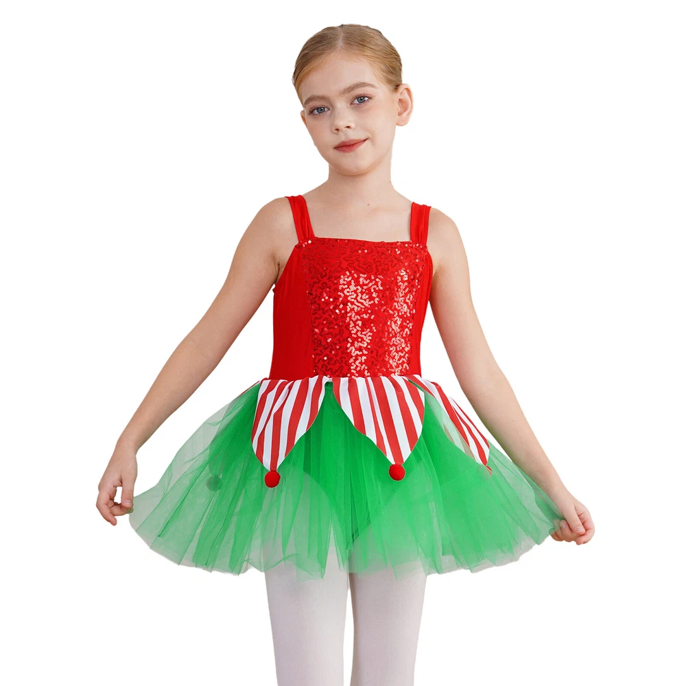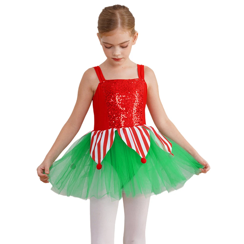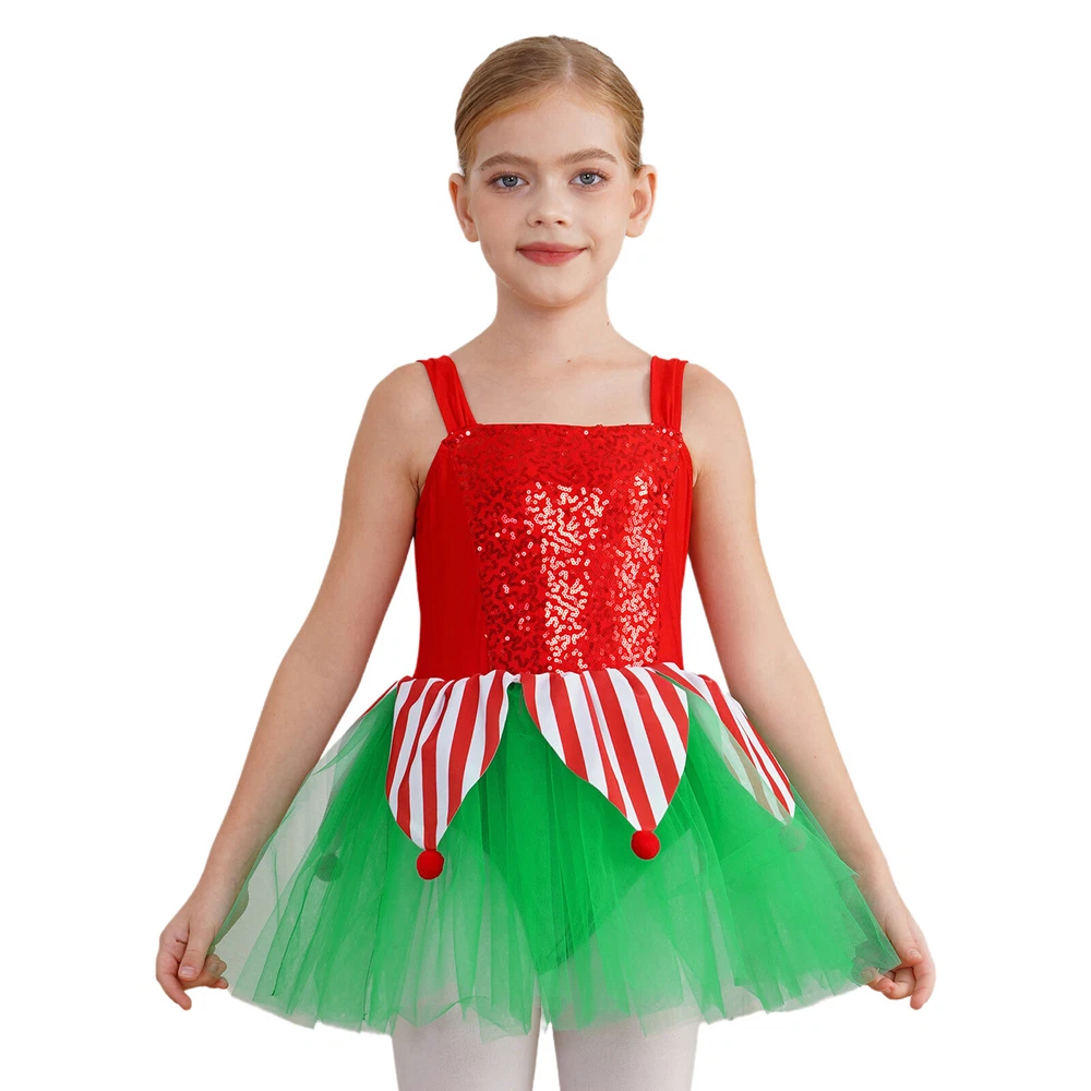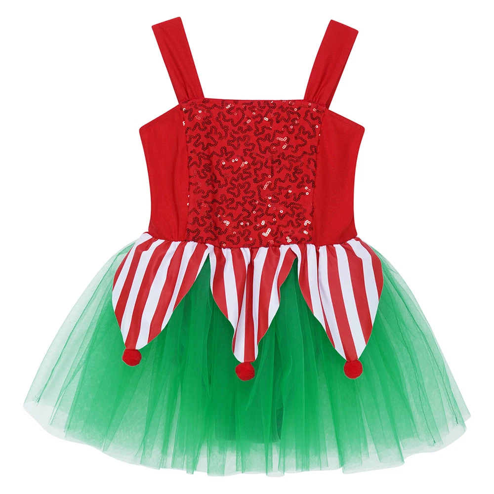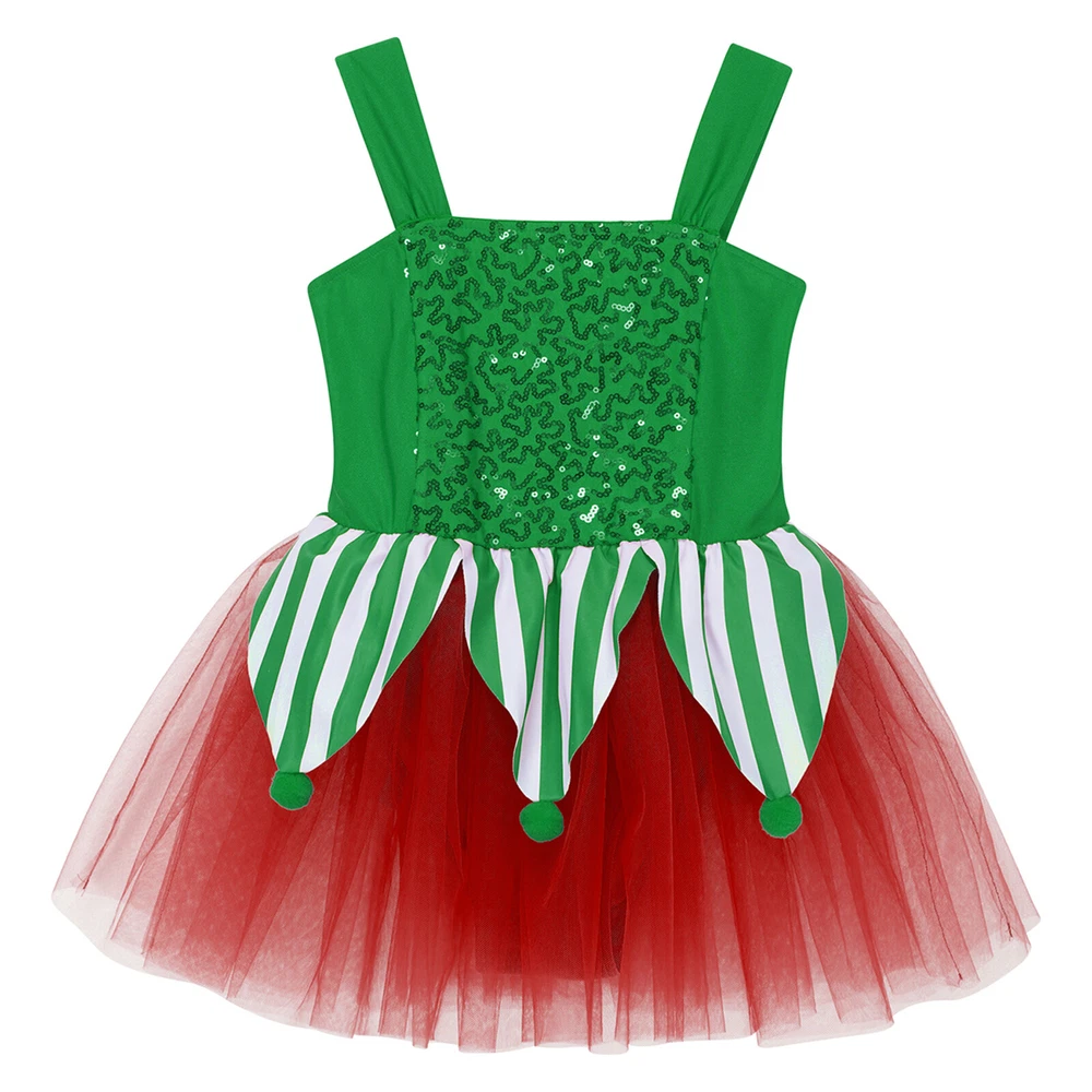 US~ Kids Girls Sequin Tutu Christmas Holiday Santa's Elf Costume Xmas Dress