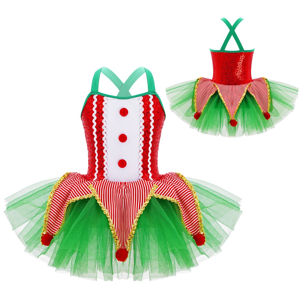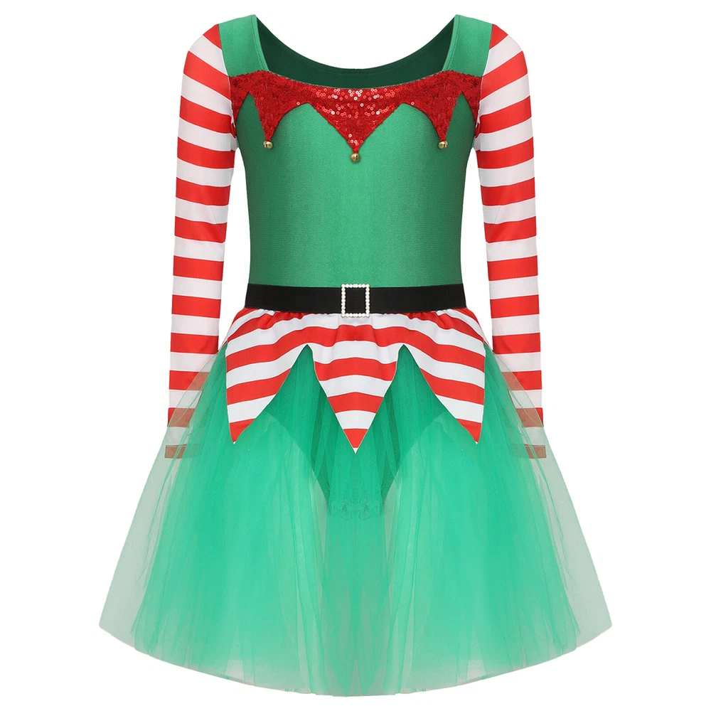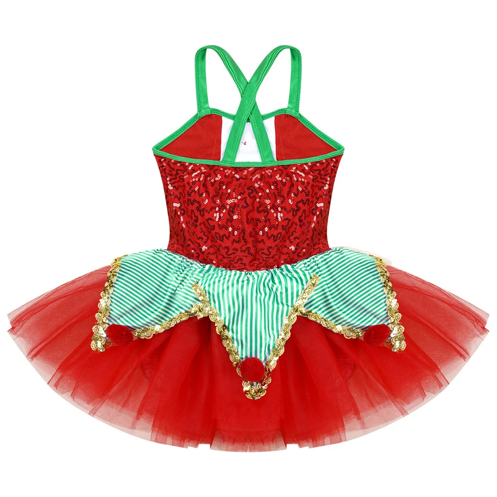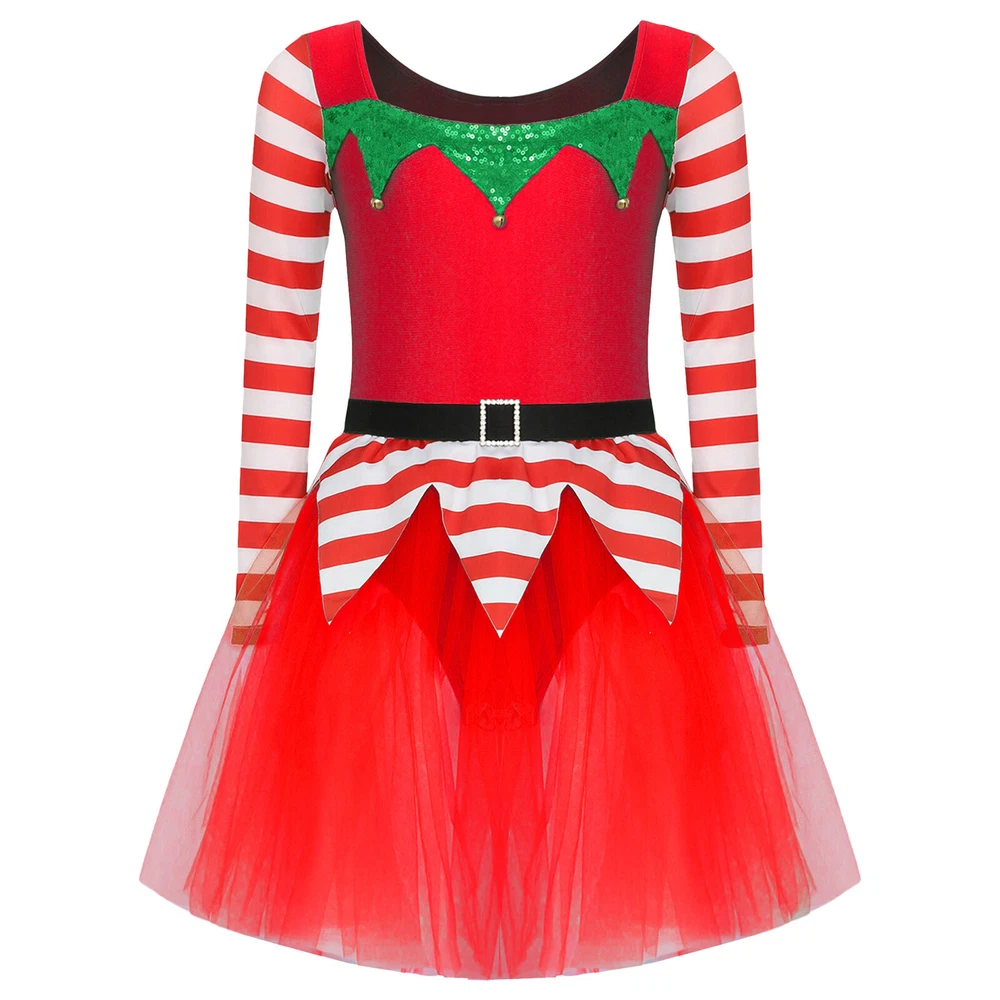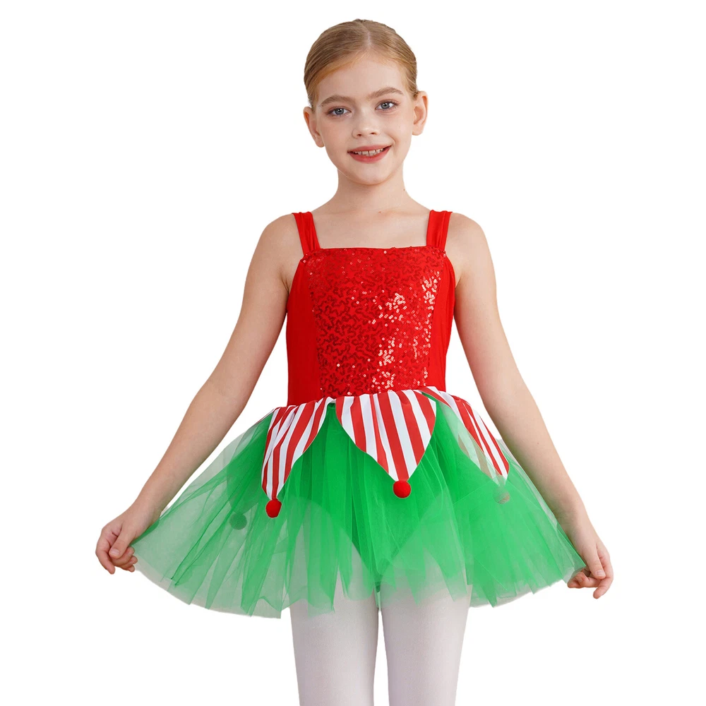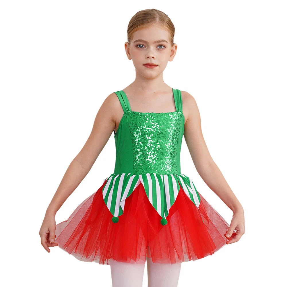 US~ Kids Girls Sequin Tutu Christmas Holiday Santa's Elf Costume Xmas Dress
