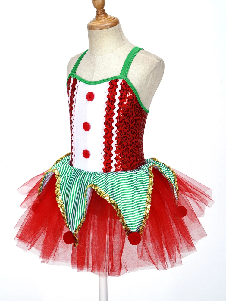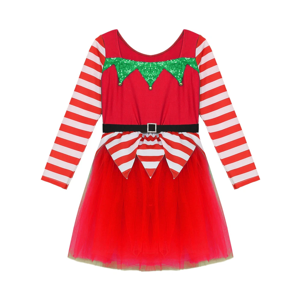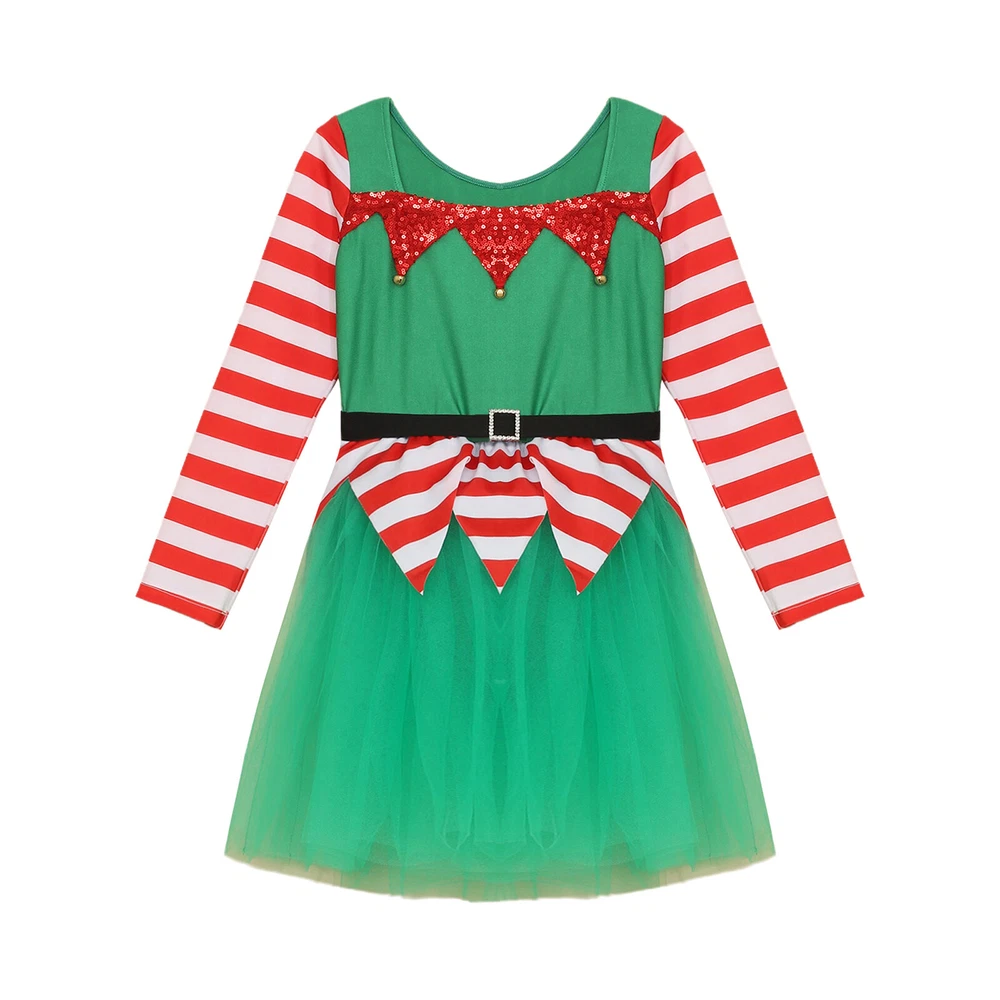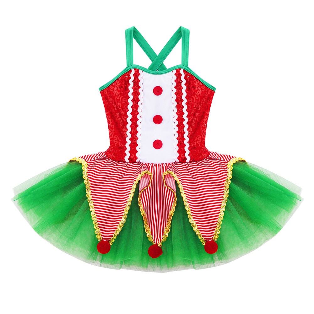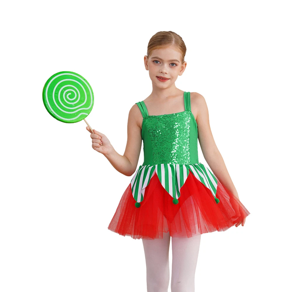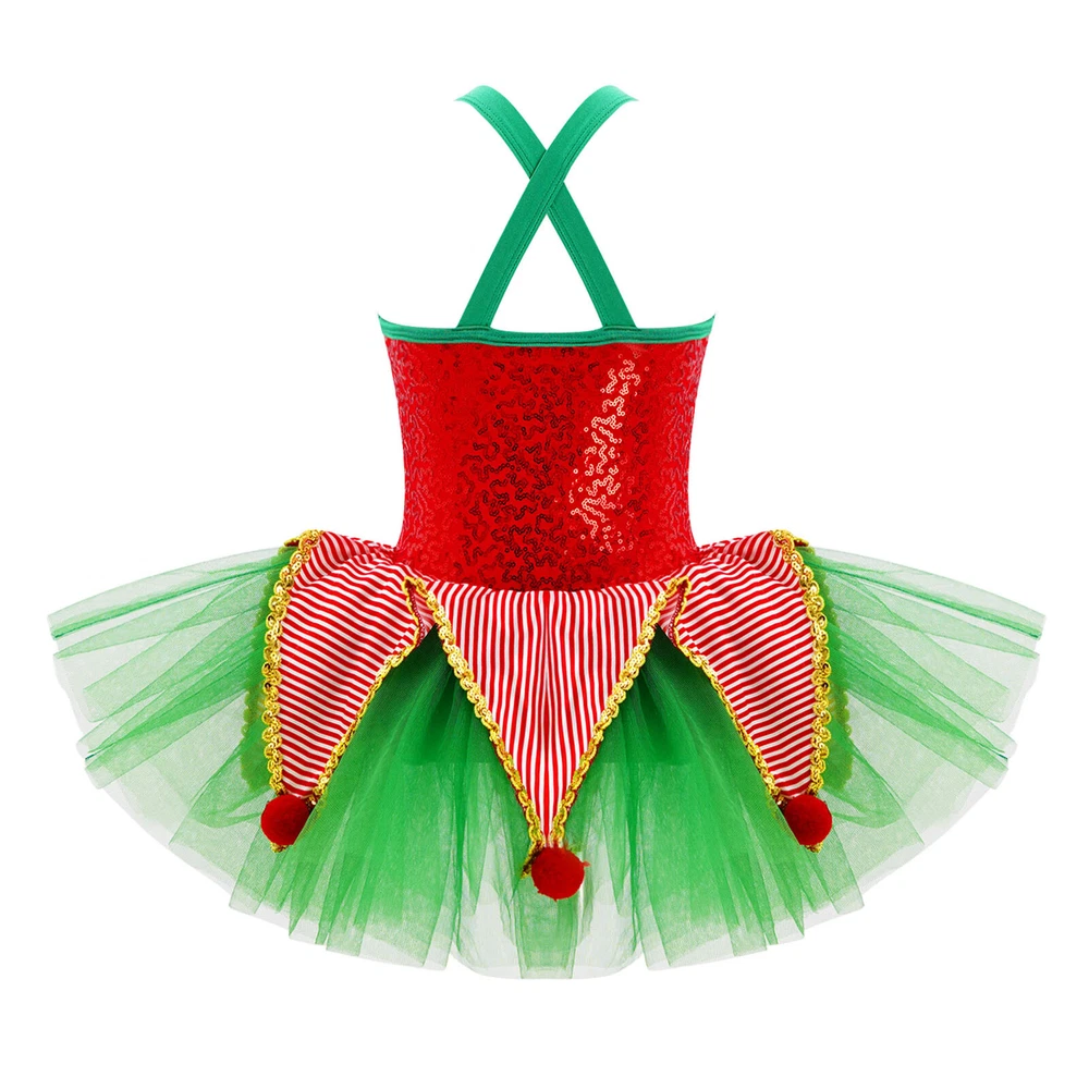 US~ Kids Girls Sequin Tutu Christmas Holiday Santa's Elf Costume Xmas Dress