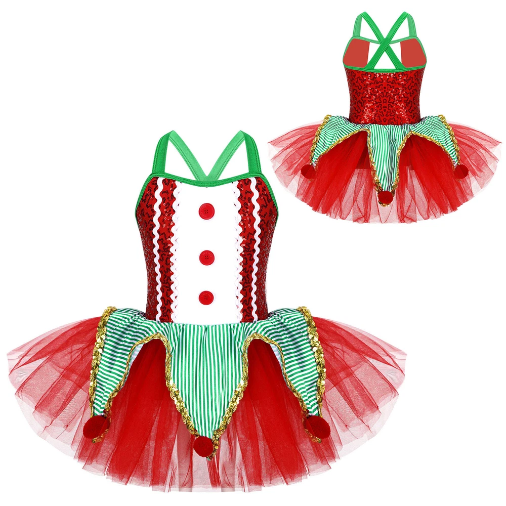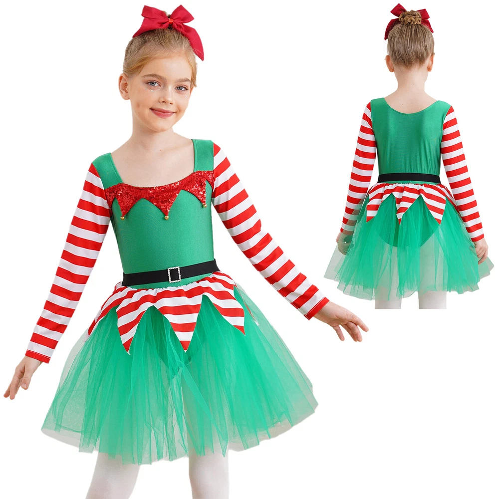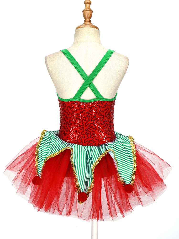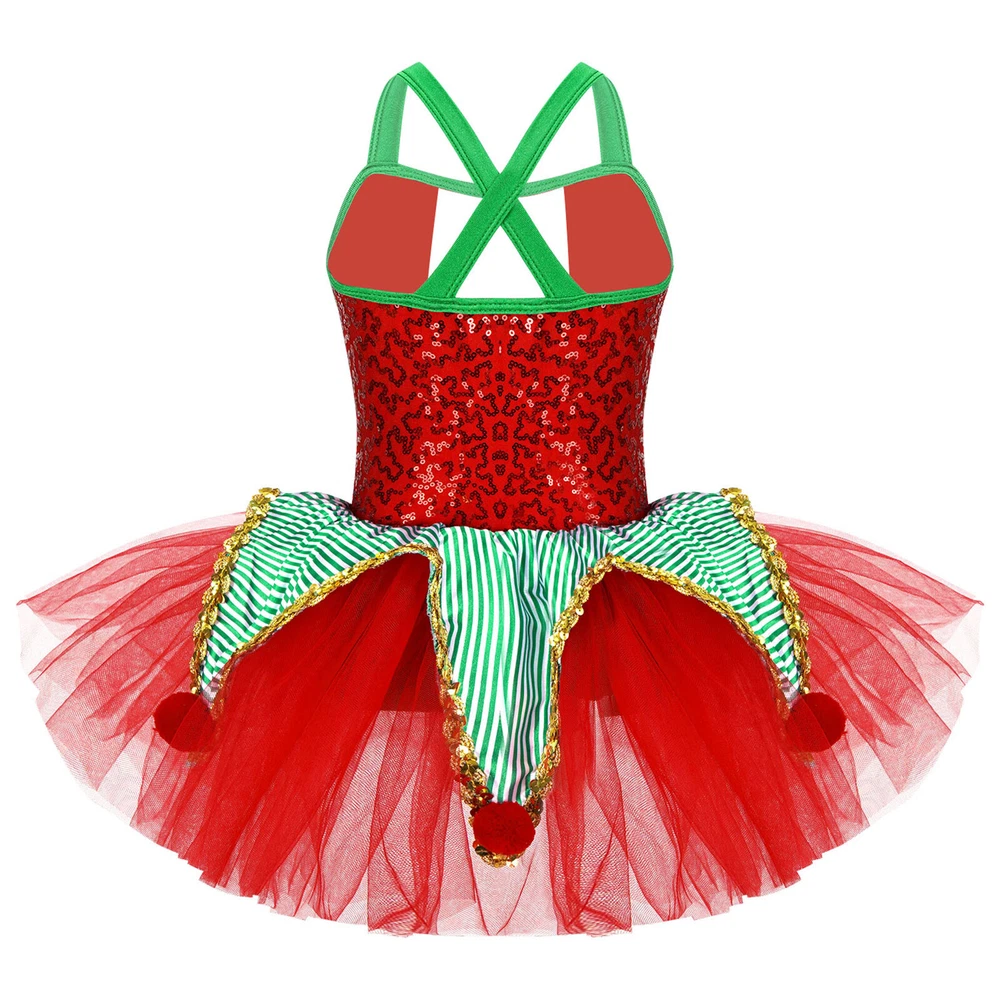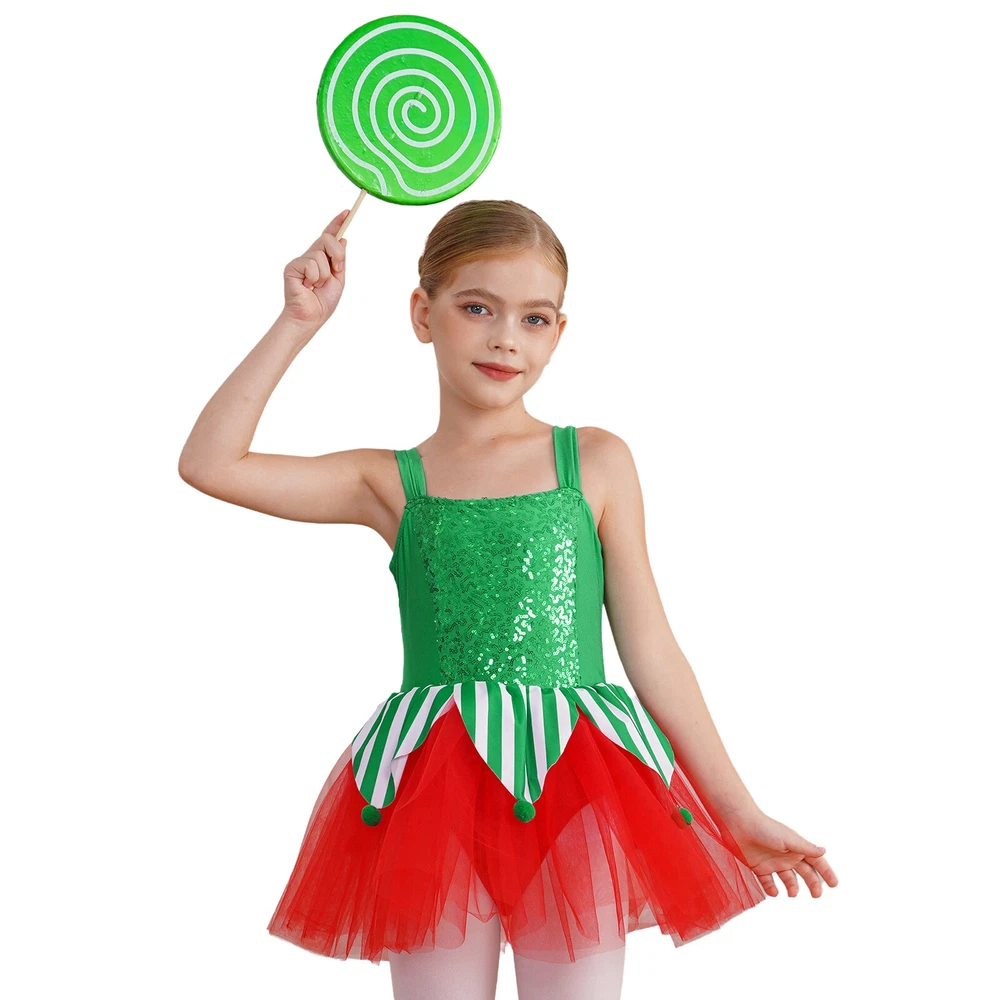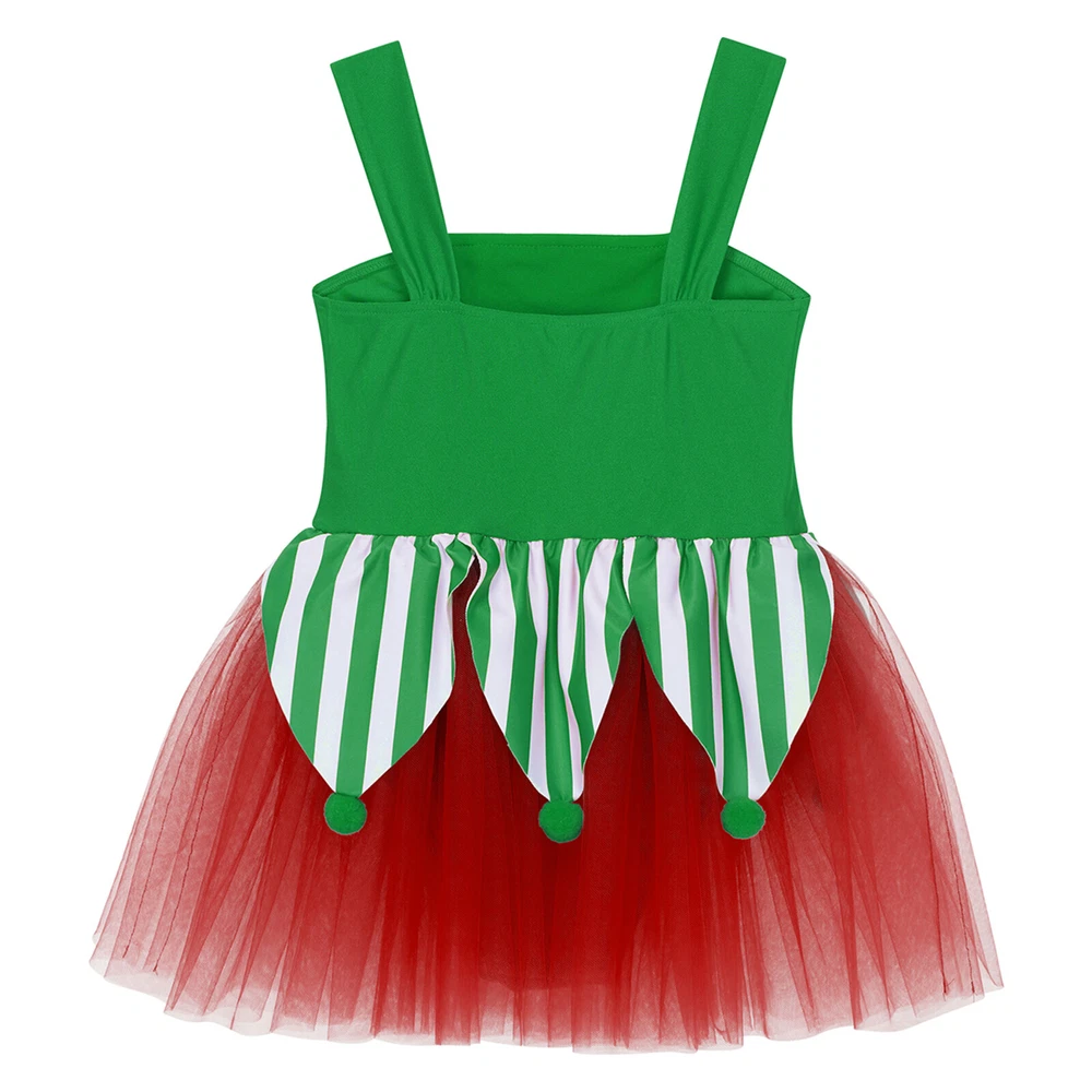 US~ Kids Girls Sequin Tutu Christmas Holiday Santa's Elf Costume Xmas Dress