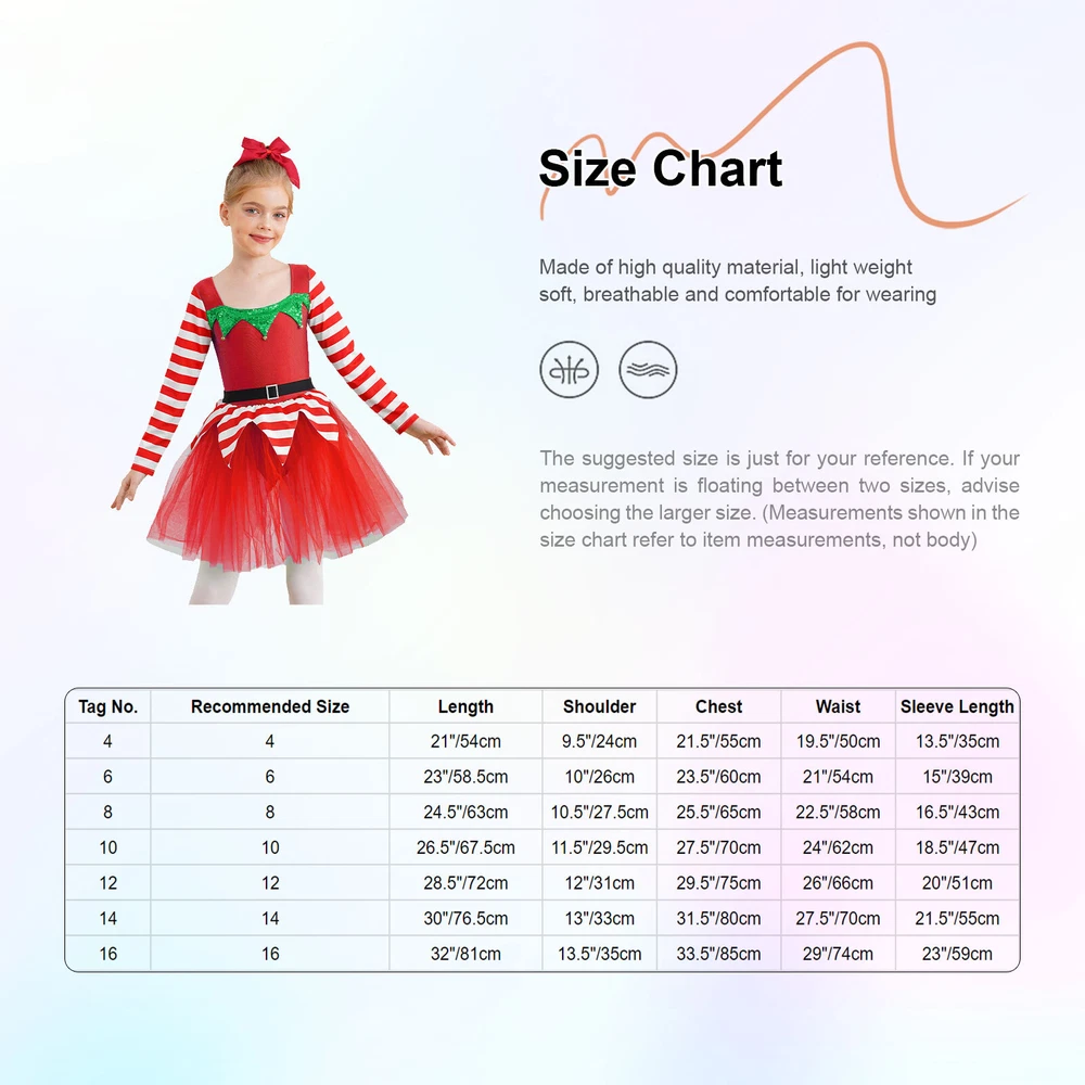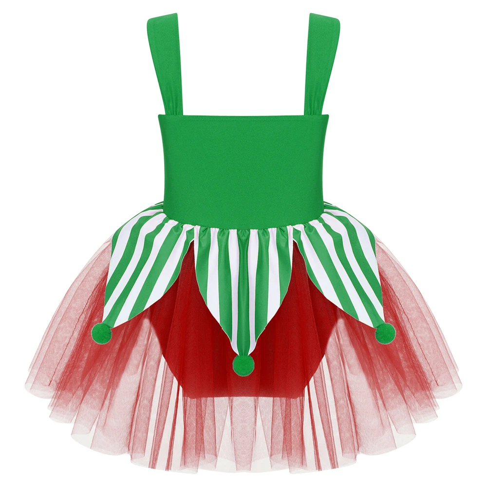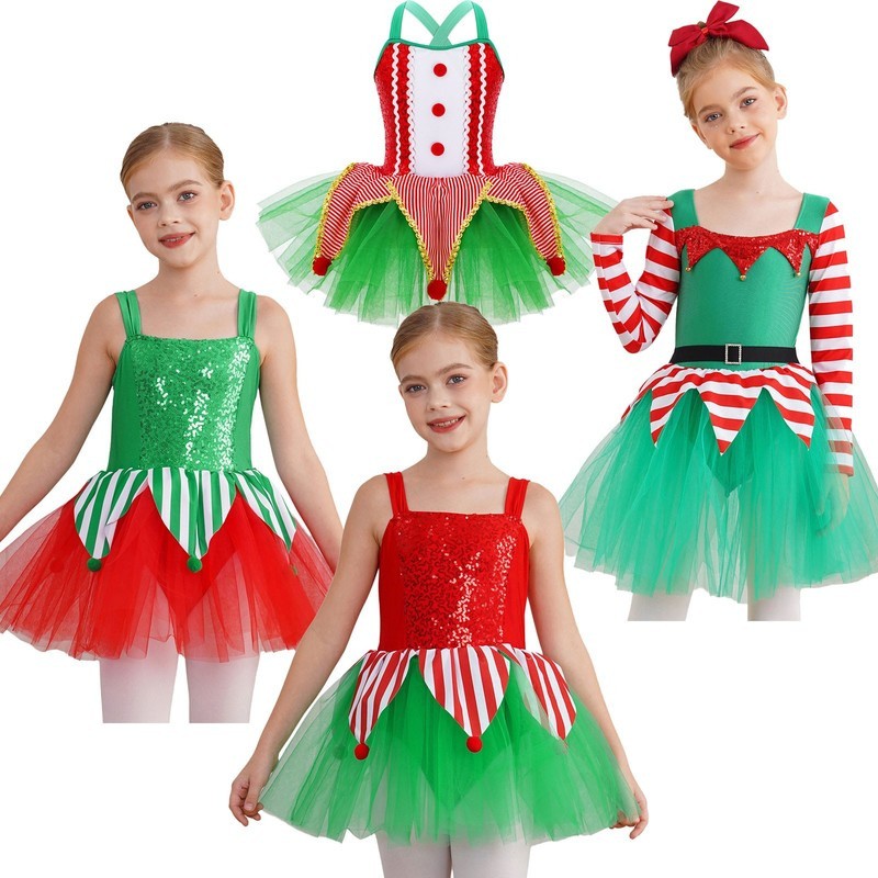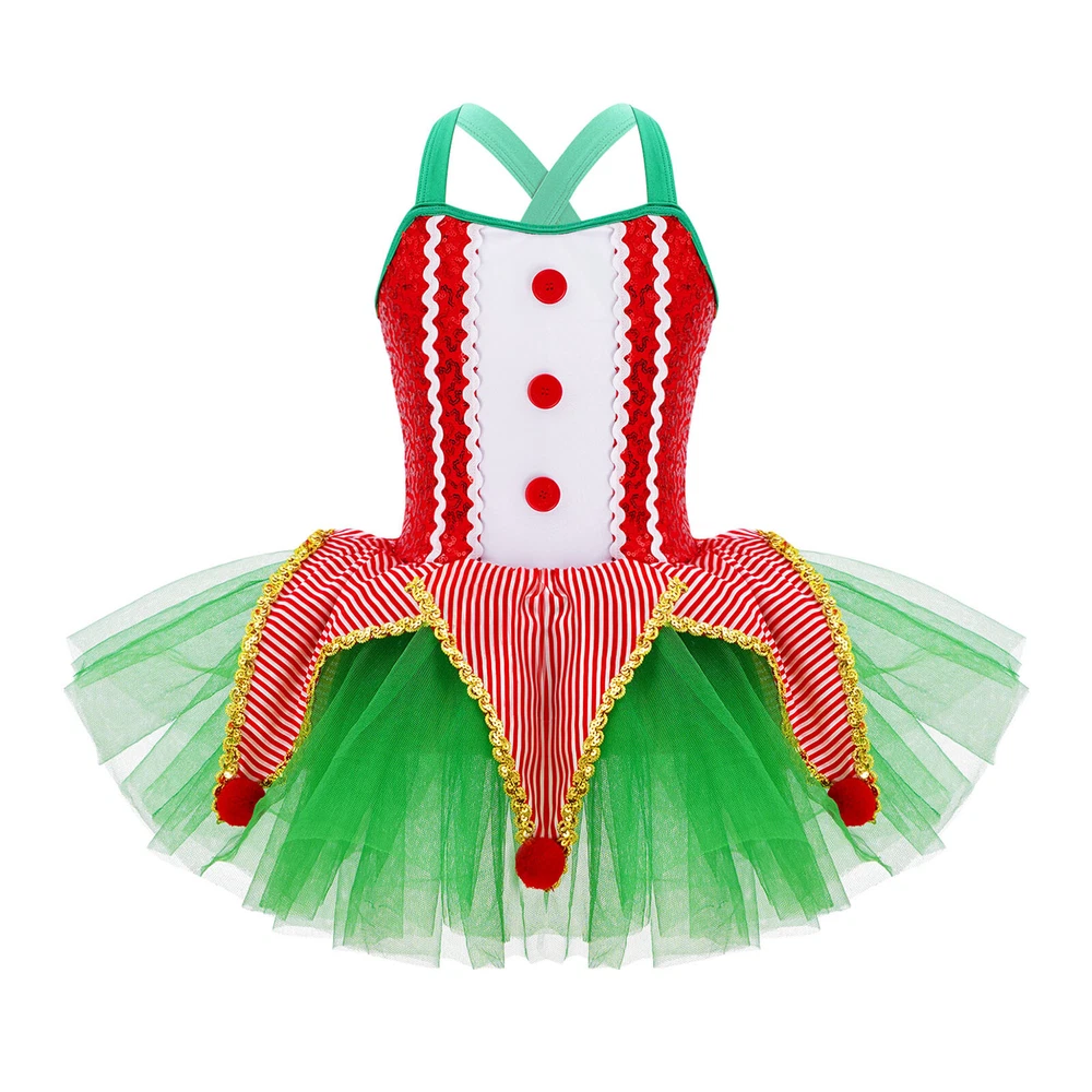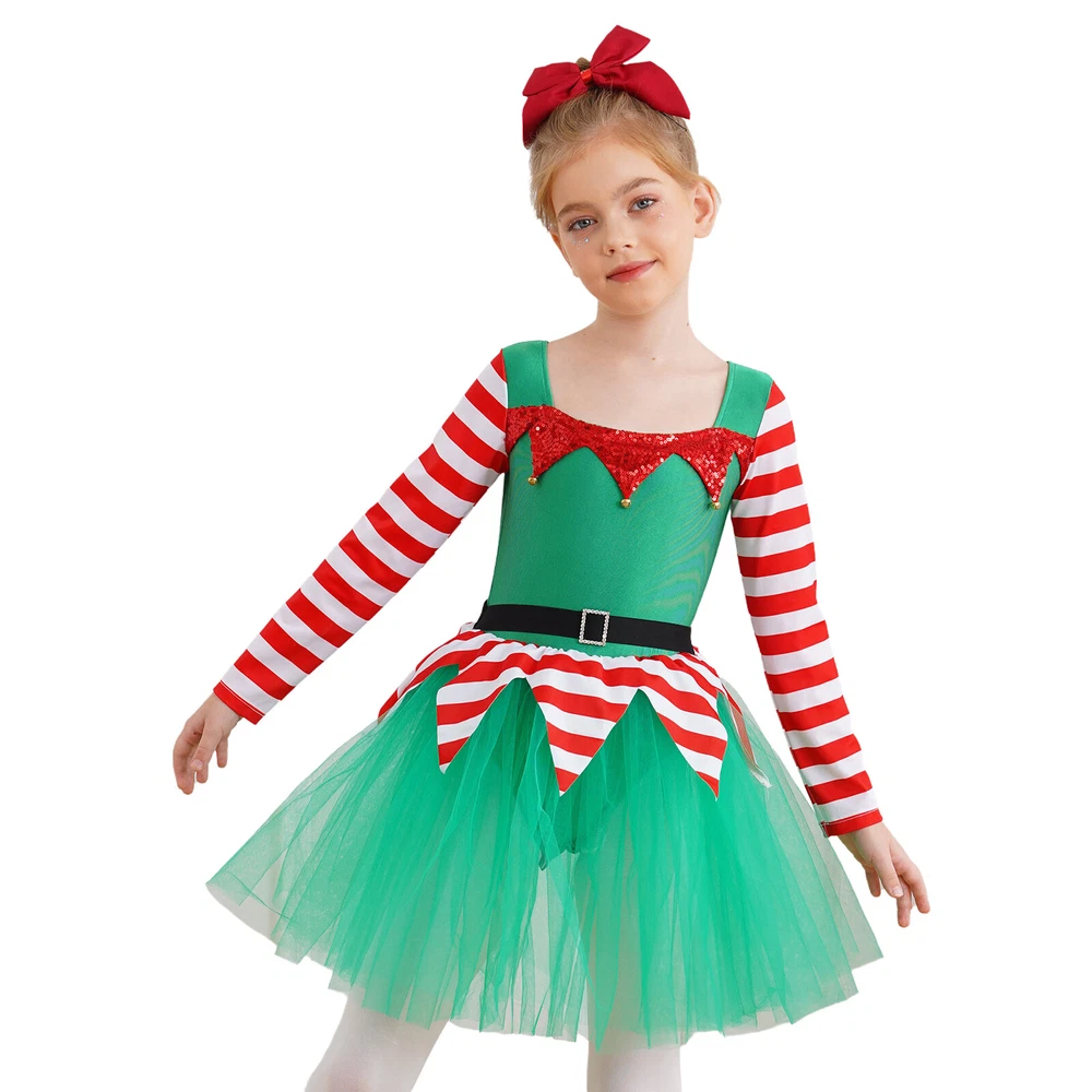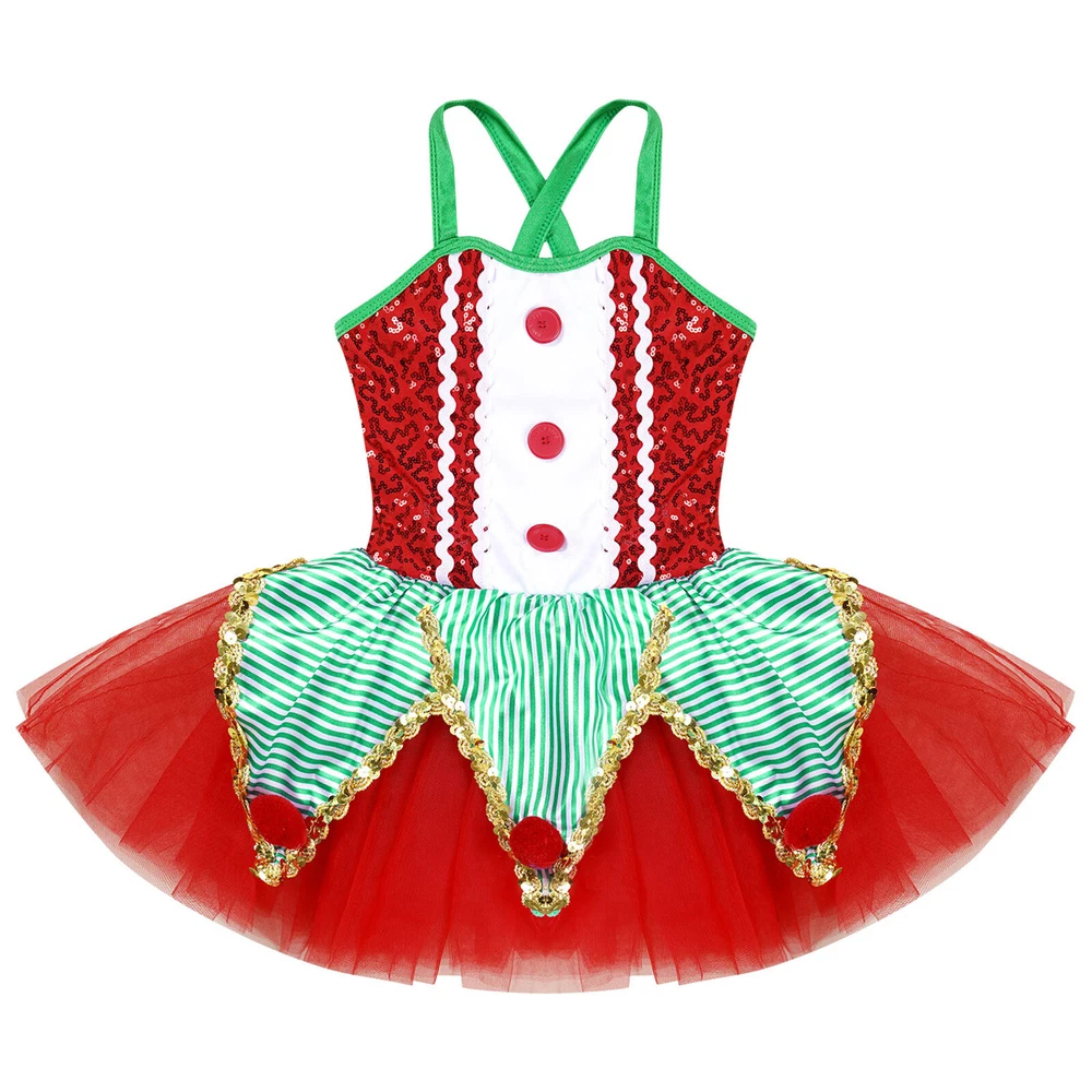 US~ Kids Girls Sequin Tutu Christmas Holiday Santa's Elf Costume Xmas Dress