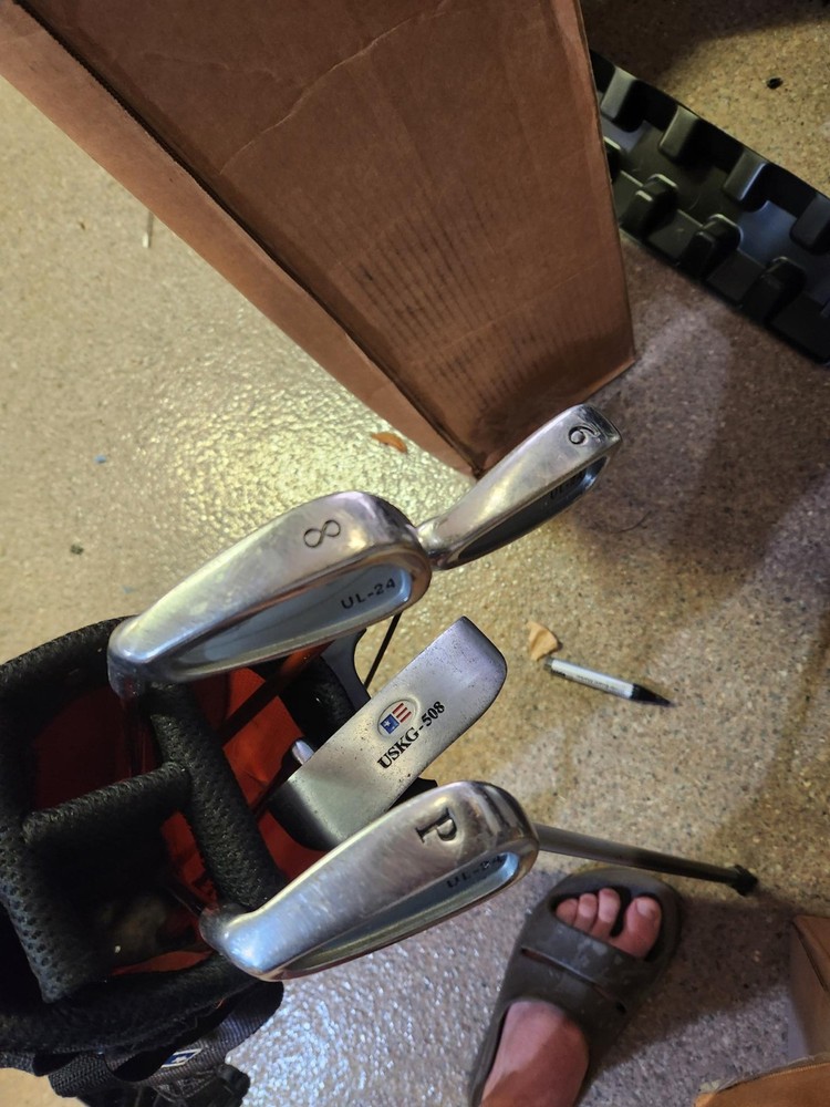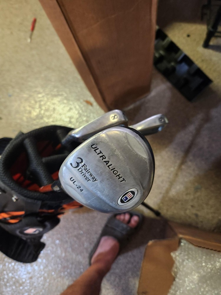 US Kids LH 51" Orange Golf Set UL-24 includes 3 wood 6 iron 8 iron Pitching Wedge putter bag