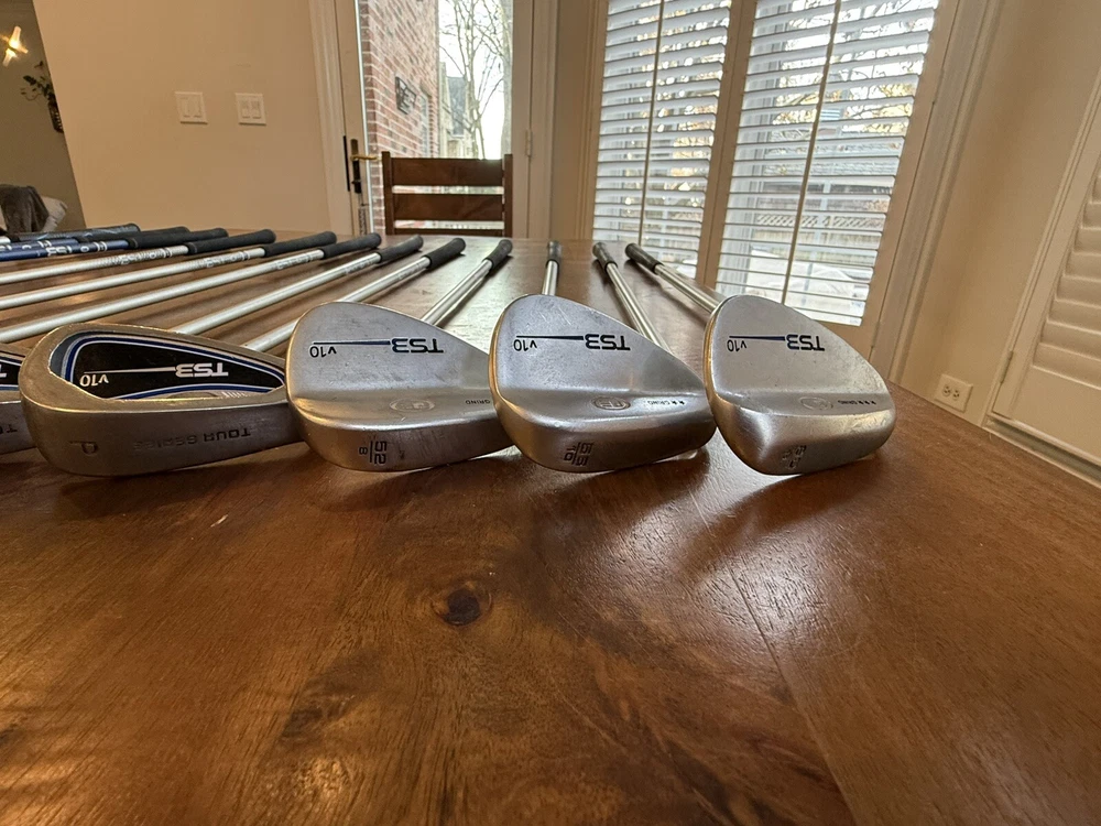 This left-handed US Kids Tour Series 3 club set is perfect for junior golfers and in great condition! The set includes 12 clubs- a Callaway Rogue driver, 3W, hybrid, 5-PW irons, and 3 wedges (52, 56, 60 degrees), all with graphite shafts for a lightweight feel. The clubs are designed for youth 54-58 inches tall ideally. GREAT Condition! Asking for less than half price of new TS clubs. Head covers for 3W and hybrid are included. No putter is included.