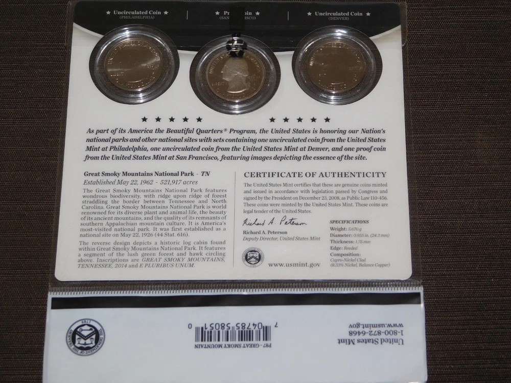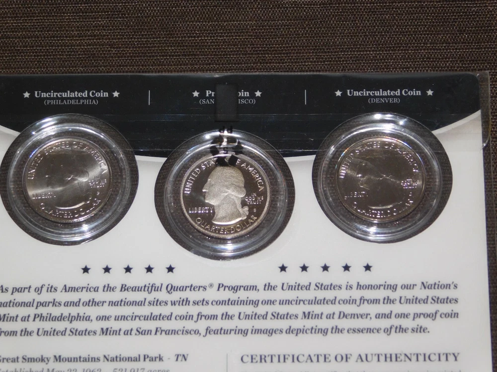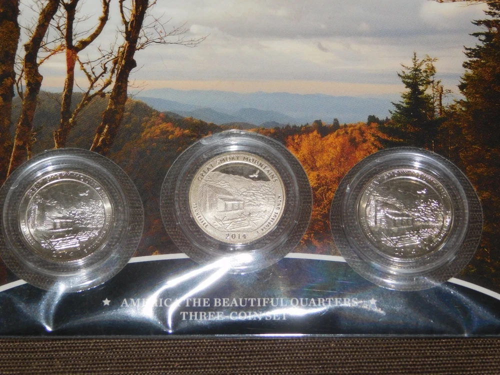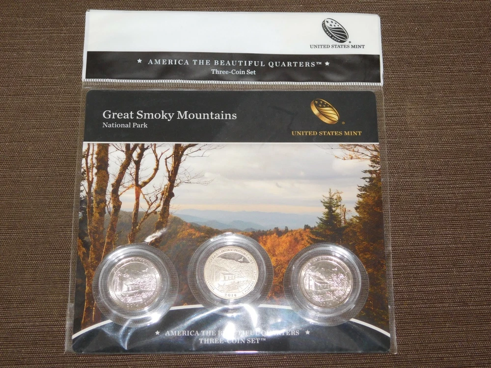 YOU ARE BIDDING ON............... .. US MINT 3 COIN SET 2014 AMERICA THE BEAUTIFUL QUARTERS GREAT SMOKY MOUNTAINS TN ....... SOME PACKAGE WEAR/LIGHT STAINS.......PLEASE VIEW PHOTOS FOR CONDITION.***PLEASE E-MAIL IF YOU HAVE A QUESTION OR WANT AN ADDITIONAL PICTURE....PLEASE VISIT MY EBAY STORE FOR ADDITIONAL VINTAGE ITEMS..THANK YOU***IV-BX3939-XXXX....