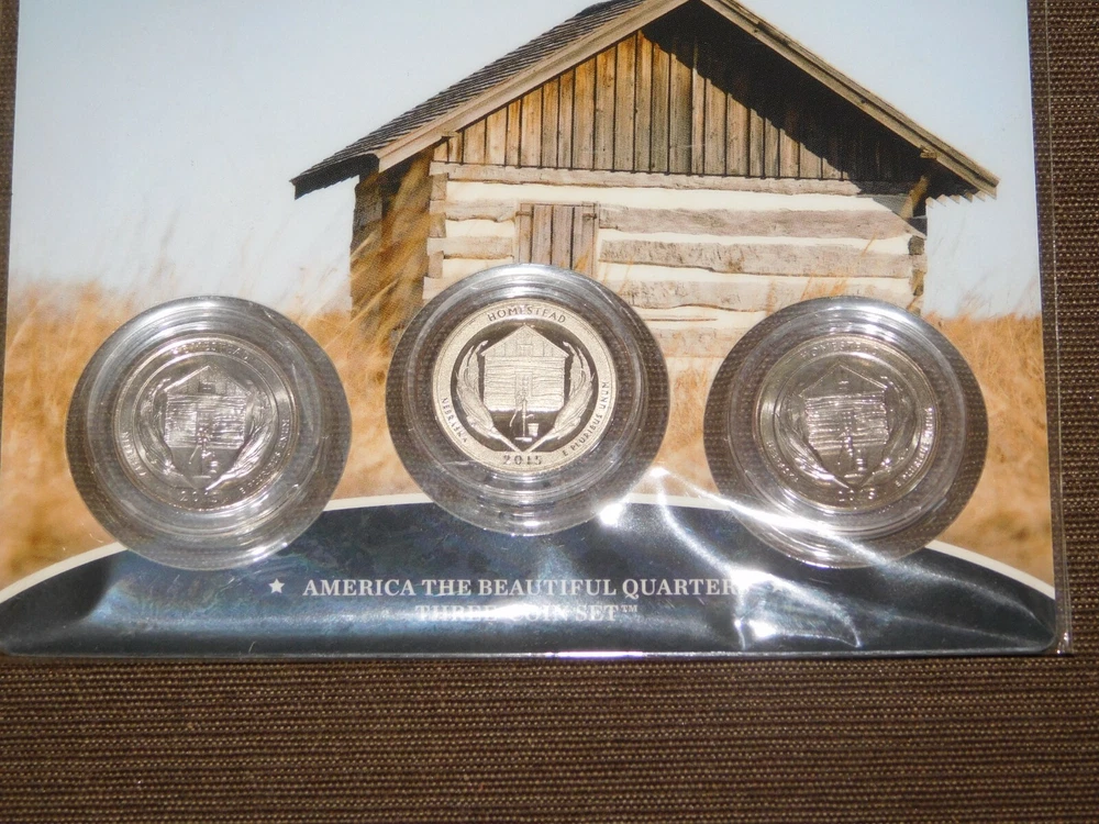 YOU ARE BIDDING ON............... .. US MINT 3 COIN SET 2015 AMERICA THE BEAUTIFUL QUARTERS HOMESTEAD NEBRASKA ....... SOME PACKAGE WEAR/LIGHT STAINS.......PLEASE VIEW PHOTOS FOR CONDITION.***PLEASE E-MAIL IF YOU HAVE A QUESTION OR WANT AN ADDITIONAL PICTURE....PLEASE VISIT MY EBAY STORE FOR ADDITIONAL VINTAGE ITEMS..THANK YOU***IV-BX3939-XXXX....