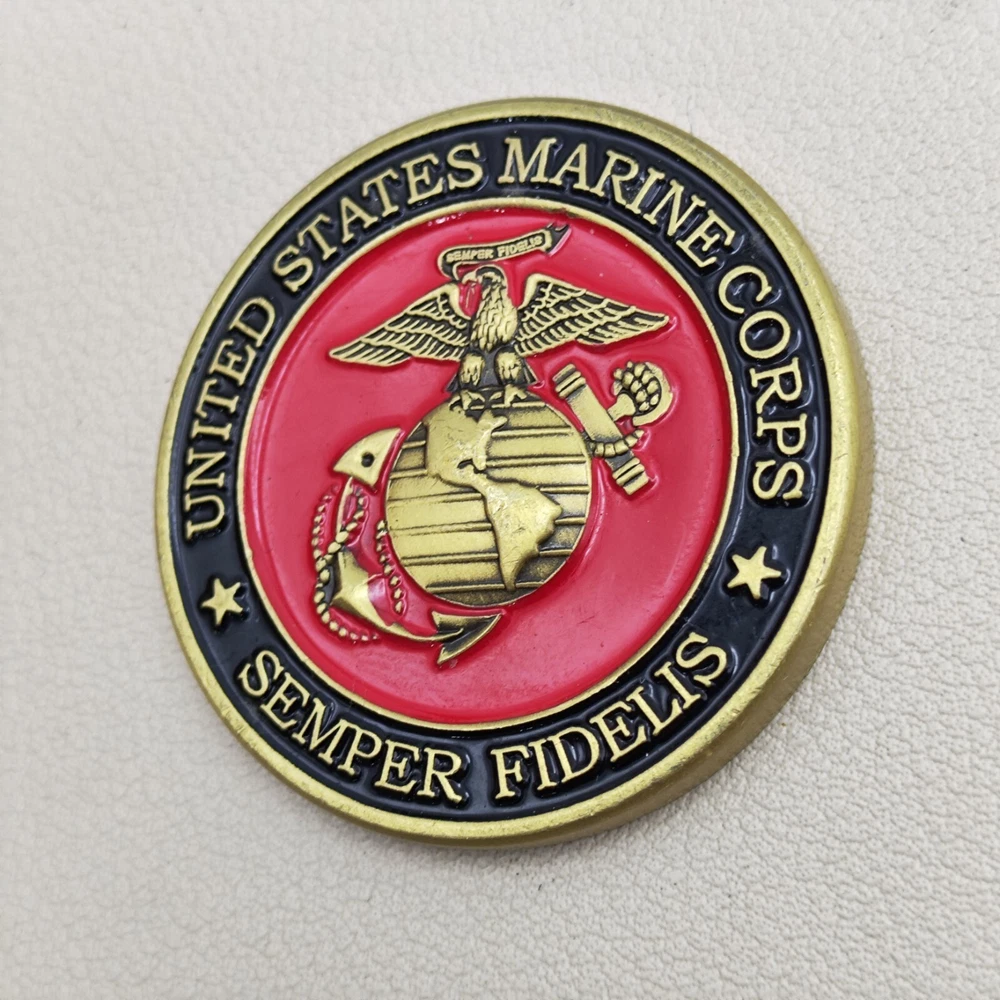 TITLE-- US Marine Corps Semper Fidelis Challenge Coin SIZE-- Measures approx. 1.5 inches Used coins have imperfections, please see pictures SHIPPING -- Ships within 5 days of receiving payment. Your purchase will be carefully packaged and you can always check tracking information on eBay Purchase two and more and get a discount on shipping SERVICES -- If you have any questions, you can contact us at any time, we will reply you as soon as possible to solve your problem If you are not satisfied with your purchase for any reason, please contact us before leaving neutral or negative feedback, we will solve the problem for you properly