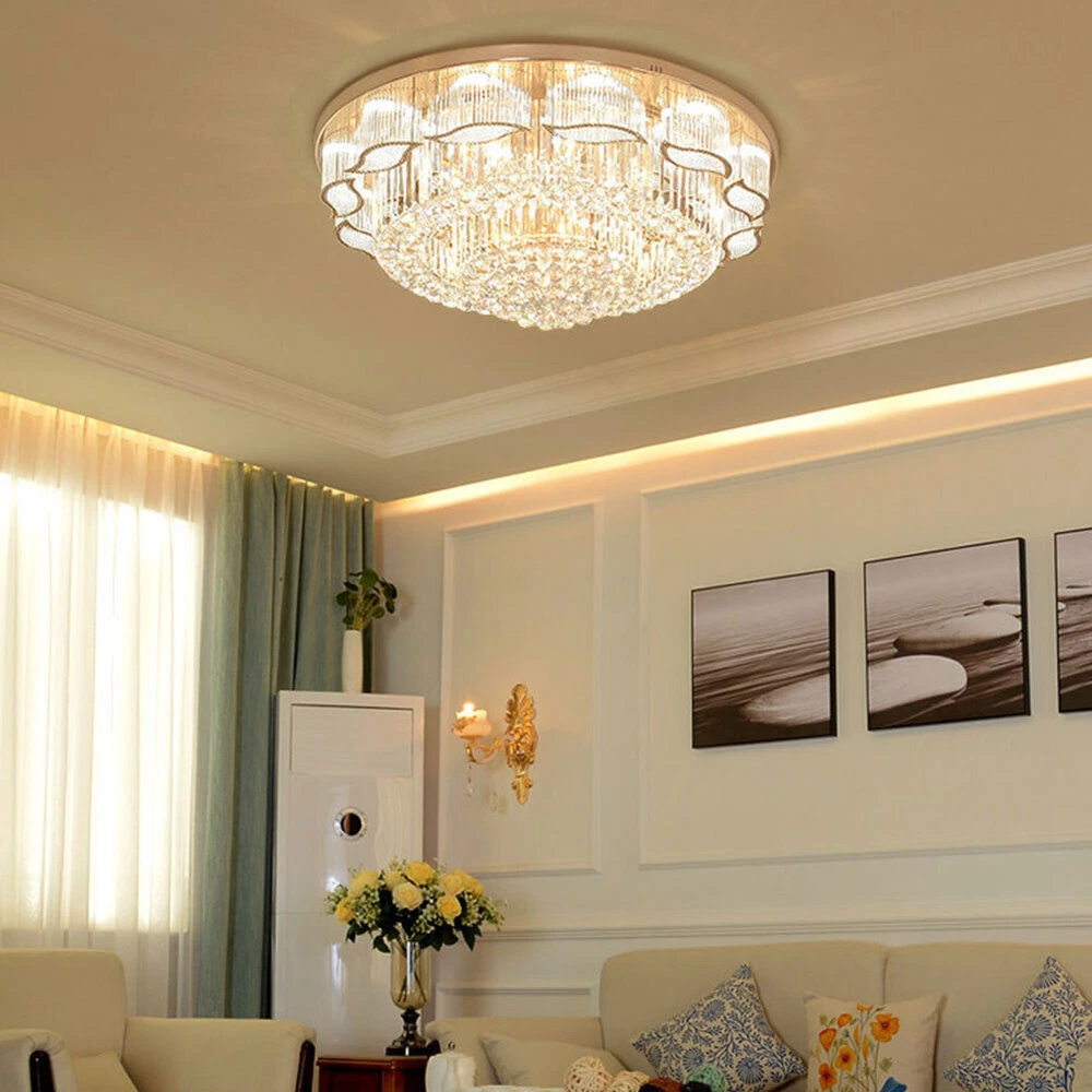 US Modern Crystal LED Ceiling Light Chandelier Flush Mount Lamp Lighting Fixture Key Words: Modern Crystal LED Ceiling Light Chandelier Lamp Flush Mount Lighting Fixture Product Description: Ceiling Type: Crystal Ceiling Lamp / Chandelier Diameter: 60cm Shade auxiliary material: Crystal Light Body auxiliary materials: ABS + Metal chassis Shade main material: Crystal LED Bulbs Type: E14 *2 Base Light source type: Incandescent LED energy-saving lamps(Not included) 3 Light Color Mode: White, Warm Yellow Light and Neutral Light Switch Type: Remote Control Technology: Electroplating An irradiation area: 15 square meters-30 m Voltage: 110V Power: 31W (including) -40W (inclusive) Application of space: Living room, Dining room, Bedroom, Other small bedroom and small living room Package: 1x Crystal Chandelier (Bulb not included) Payment Delivery details Terms of sales About us Contact us Payment We accept ebay payment 。 Fees such as import duties, taxes are not included in the item price or shipping costs. These charges are the buyer's responsibility. Delivery details Shipping: 2-9 working days to: USA Terms of sales We maintain high standards of excellence and strive for hundred percent customer satisfaction. Feedback is very important to us. We hope that you contact us immediately before you give neutral or negative feedback, so that we can address your concerns. It is impossible to address issues if we do not know about them! About us Your satis faction is our ultimate goal. We work hard to earn your trust and future business. Our certified technicians have tested each item before shipping. The unit comes with 1 year limited warranty on all manufacturing defects. a) If you receive a defective item, you may return it or ask for a discount. Please contact us within 14 days after you receive the package. b) What you returned must be intact and in its original packaging as re? u. Customer is responsible for shipping costs of the returned item. c) We will cover the cost of shipping back t with the shipping rate indicated in the registration page. We will send you a new unit or refund the full payment you paid. Thank you. Contact us Business Hour Business Hour: Monday To Friday: 8:30 AM to 5:00 PM (Beijing China time) Due to time zones, our reply to your questions may not be immediately. But within above working time, we will reply your email within 24 hours. If it's non-workdays, please kindly be patient and wait till Monday. Please contact us with ebay message. Please feel free to contact us if you have any questions. Monday To Friday: 8:30 AM to 5:00 PM (Beijing China time) Due to time zones, our reply to your questions may not be immediately. But within above working time, we will reply your email within 24 hours. If it's non-workdays, please kindly be patient and wait till Monday. Please contact us with ebay message. Please feel free to contact us if you have any questions.