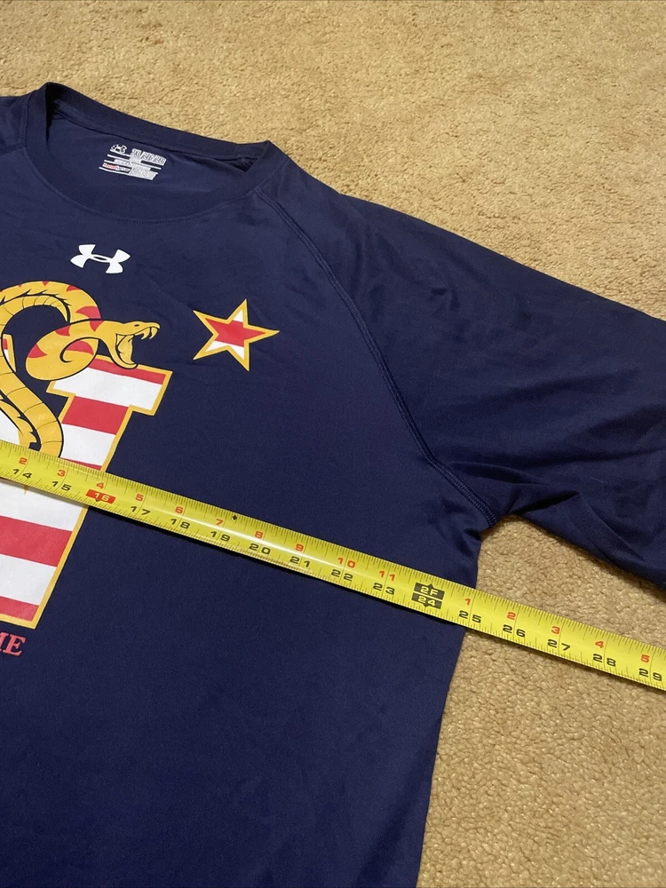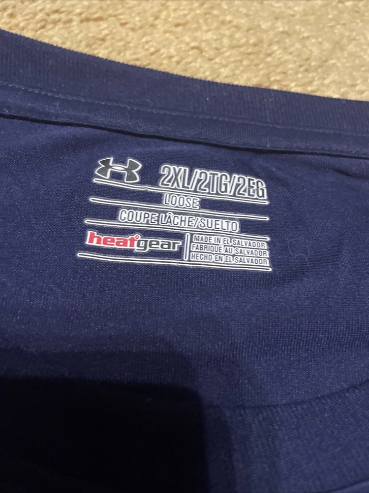 Fit:Relaxedgtin13:Does not applyType:T-ShirtNeckline:Crew NeckFeatures:Lightweight, Moisture WickingTheme:Animals, Snake, USA, dont tread on me, merica, america, stars & stripes, american flag, usa flag, maga, red white blue, loose fitProduct Line:Under Armour HeatGearVintage:NoMaterial:PolyesterDepartment:MenUPC:Does not applyBrand:Under armourSleeve Length:Short SleevePattern:SolidColor:BlueSize:2XLSize Type:RegularAccents:Logo