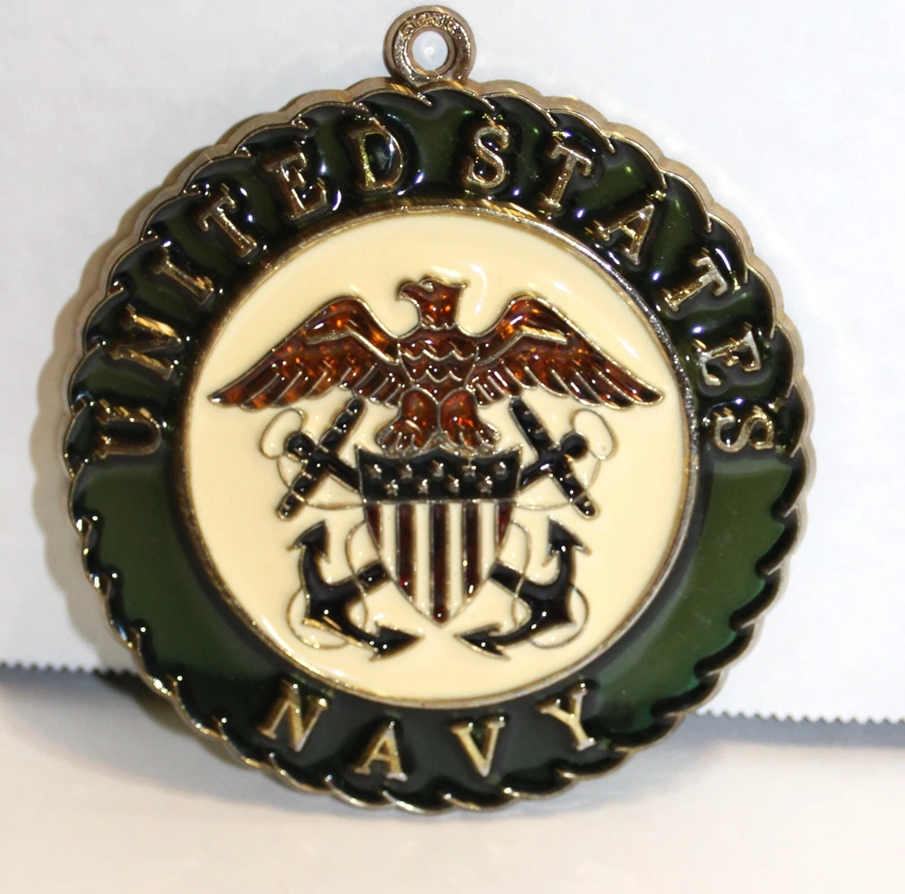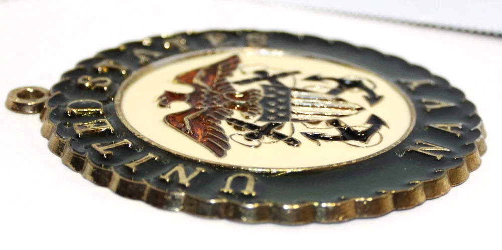 US Navy Stain Glass Vintage Retro Stamped Suncatcher Hanging Pendent Gold Trim
