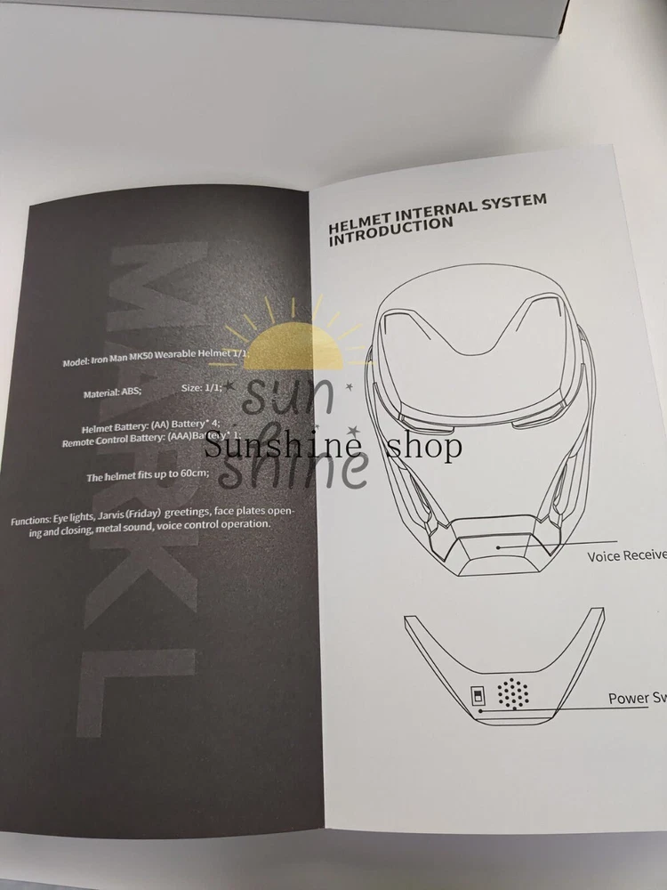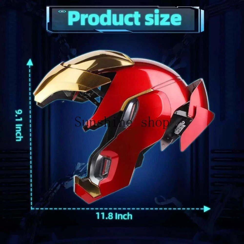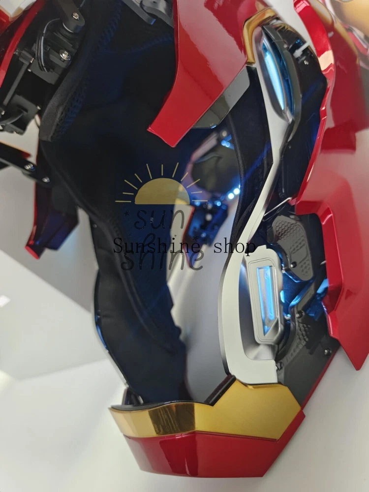 Product Details Product Name: MARK50 1/1 Wearable Collectible Helmet Product Type: Finished Product Scale: 1/1 Material: ABS Wearable head circumference: within 60cm Function description: 1. Support three ways to control the helmet. 【①touch sensing】;【②remote control】;【③Chinese and English voice control】 2. With voice command dialogue control function, you can use specific keywords to have a simple voice dialogue with the helmet 3. There are two opening and closing methods [normal opening and closing] & [split opening and closing] 4. On the basis of film and television, according to the original settings, 4 original light-emitting sites have been added, [Armor Auxiliary Power Supply]. 5. The electroplating drawing process is used to fully restore the details of the helmet collection film and television props