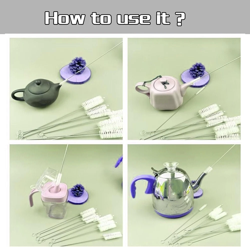 Description: This product contains 1 set of 10 tube brushes with varying diameters. You can always find a fit tool when cleaning gaps, dead angle places. Easy to get into hard-to-reach spaces, and no more remaining dust in your life. All brushes are 200mm long, dishwasher safe, and constructed with stainless steel and nylon bristles. This set of 10 brushes comes with a detachable key ring for quick and easy access. All brushes have a convenient loop at the end of the handle to hang when not in use or to reattach to the key ring for safe keeping. And each end of the brush has conservatory design, which provide you more safety. Not only prevent scratching the items, but also protect you from hurting yourself when cleaning. The brushes come with appropriate hardness. Don't worry about scratch your items when cleaning any more, such as glasses, jewelry, cell phones, etc. Made of stainless steel and nylon bristles, safe to wash dishes and drink straws. Well-made nylon bristles is also not easy to pluck. Material: Nylon stainless steel Color: Black/White Specifications: This product contains 1 set of 10 tube brushes with varying diameters. All brushes are 200mm long, dishwasher safe, and constructed with stainless steel and nylon bristles. This set of 10 brushes comes with a detachable key ring for quick and easy access. And each end of the brush has conservatory design, which provide you more safety. Package Included: 1-10 x Nylon Cleaning Brush Notes: Due to the difference between different monitors, the pictures may not reflect the actual color of the item. Compare the detail sizes with yours, please allow 1-3cm error, due to manual measurement. Buyer Note: If you are satisfied with our service, we appreciate you leaving us a positive feedback and 5 star rating review! Your opinion is important to the success of our business. If you are not satisfied with the product or have not received the product for more than 35 days, please contact us to resolve, we will do our best to solve. We are sure to come up with a satisfactory solution. Please contact us first before leaving cold feedback or good feedback of 1-3 stars and opening the case. We'll do our best to solve your problem. Because we believe that everything can be solved through communication. Thank you very much!