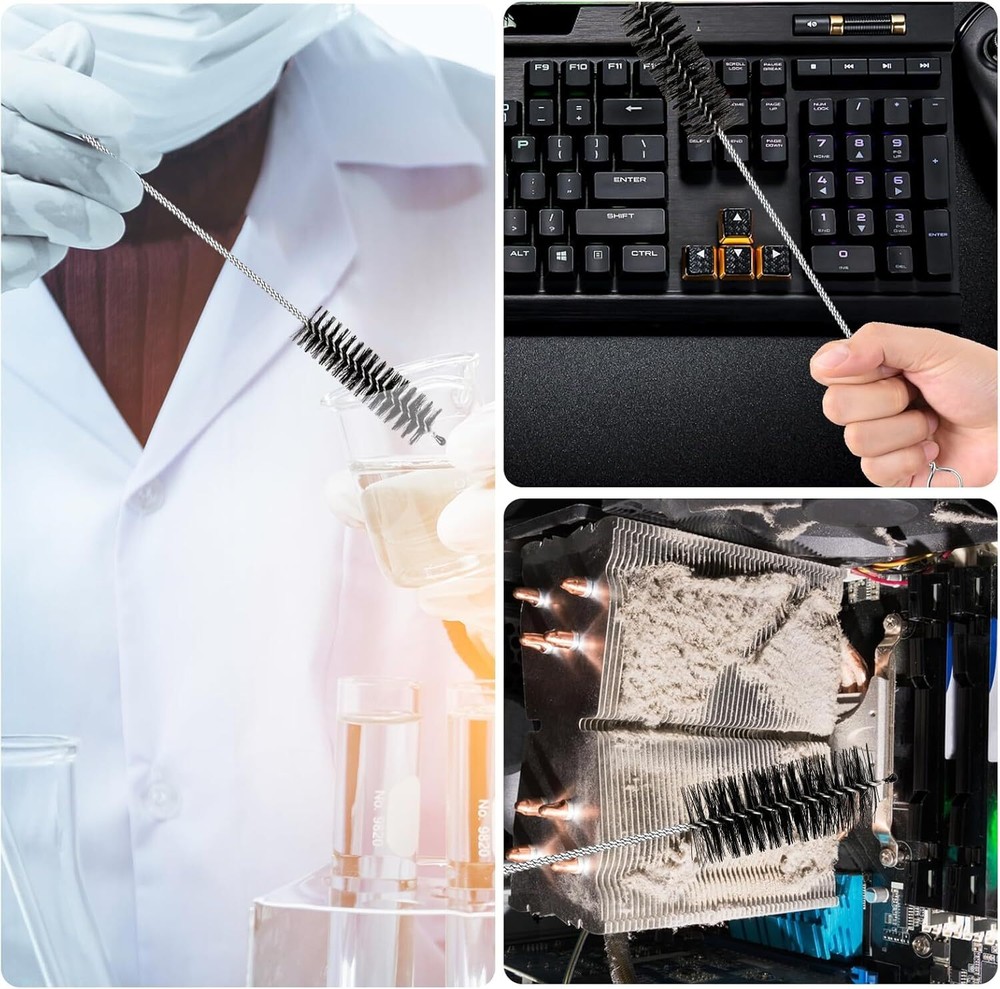 These nylon straw brushes are a game-changer for cleaning tight spaces! The set of 10 different sizes ensures there's always a perfect fit for tubes, pipes, or tricky gaps. The long 200mm reach and sturdy stainless steel/nylon construction make scrubbing effortless, while the key ring and hanging loops keep them organized. No more dust buildup in hard-to-reach spots—just toss them in the dishwasher for easy maintenance. Super handy and durable!