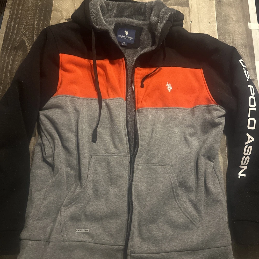 U.S. Polo Sport Jacket Mens XL Black/Red/grayPerformance Hooded Full Zip