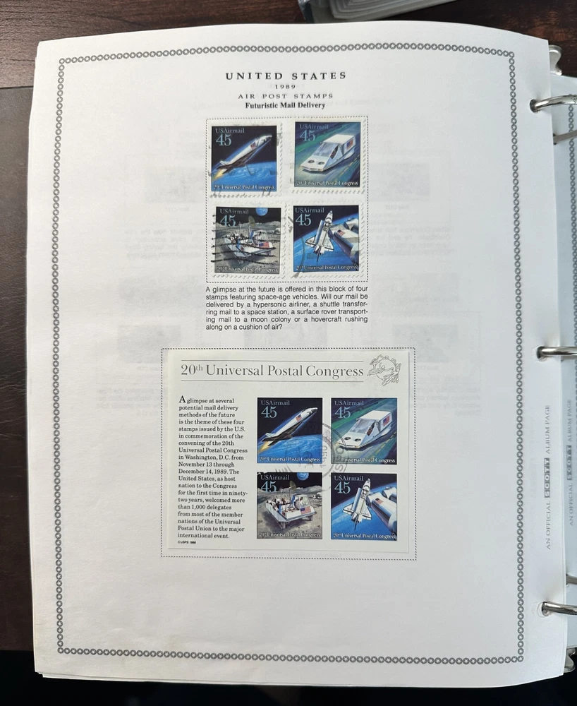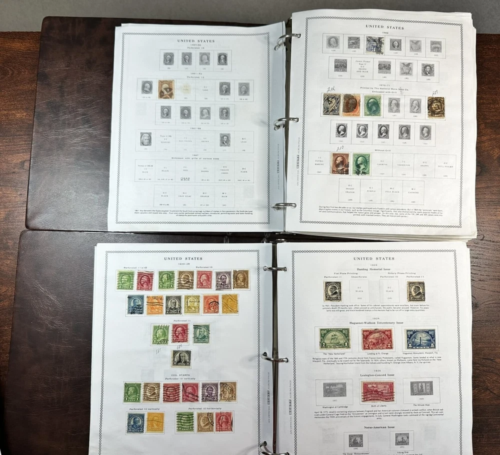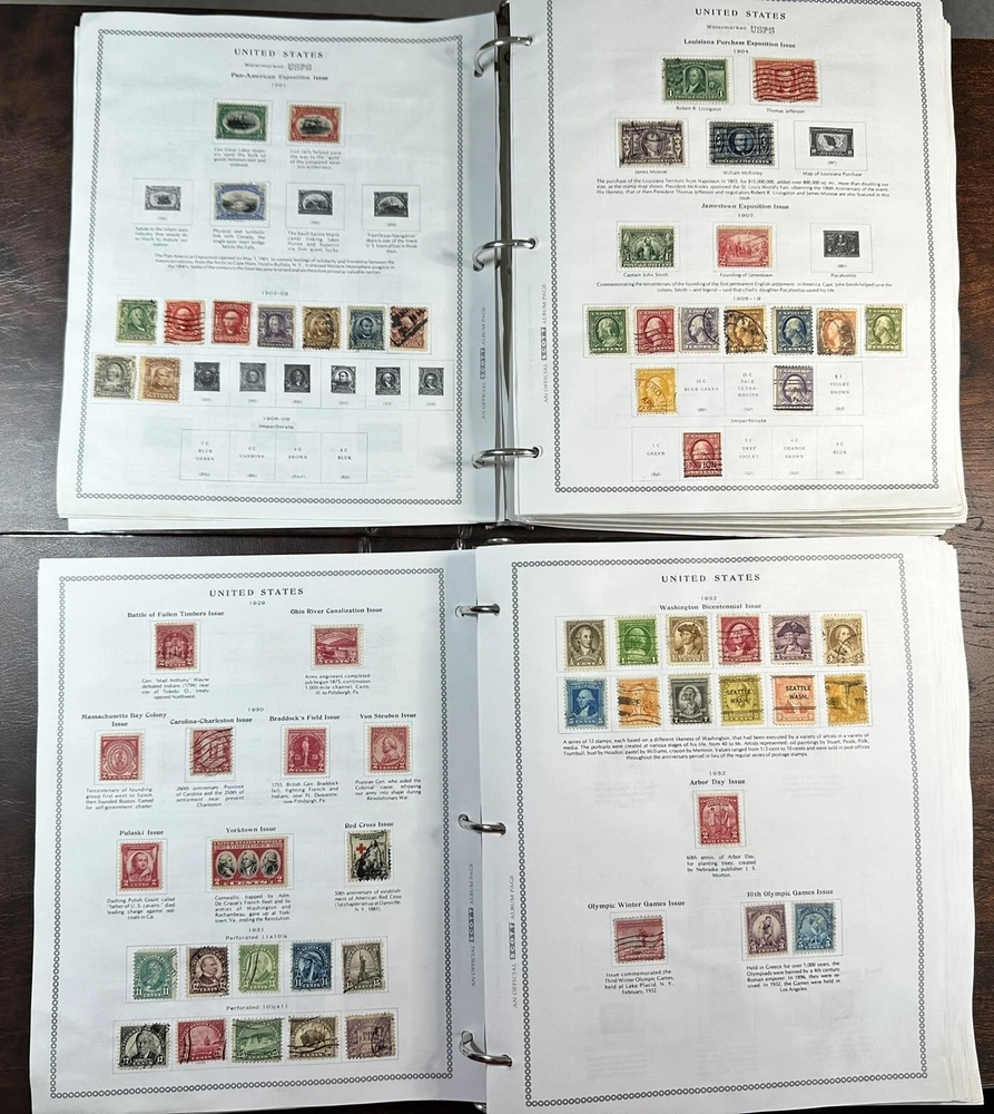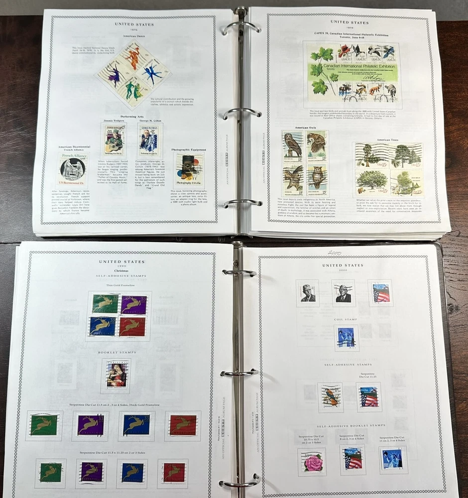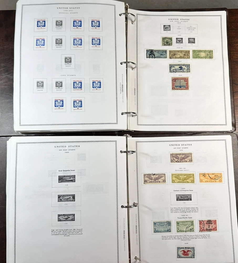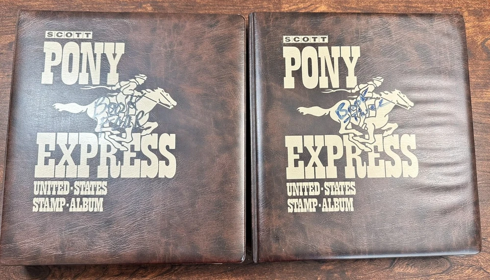 A pair of US postage Pony Express stamp albums. These albums are approximately 60-80% complete with used stamps. Pictures represent only a fraction of the total content. These albums have not been checked for page completeness, accurate stamp placement or quality. R