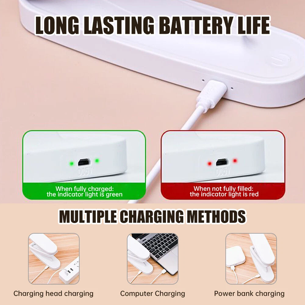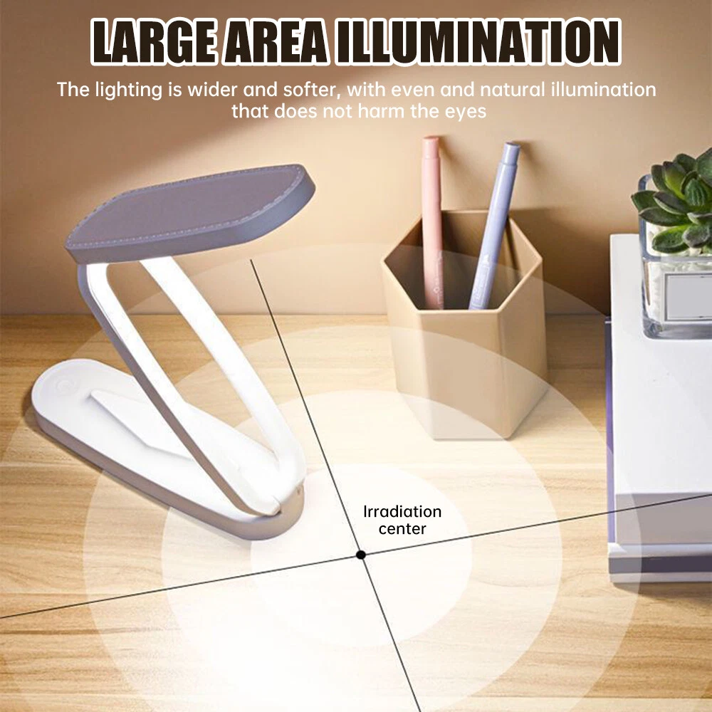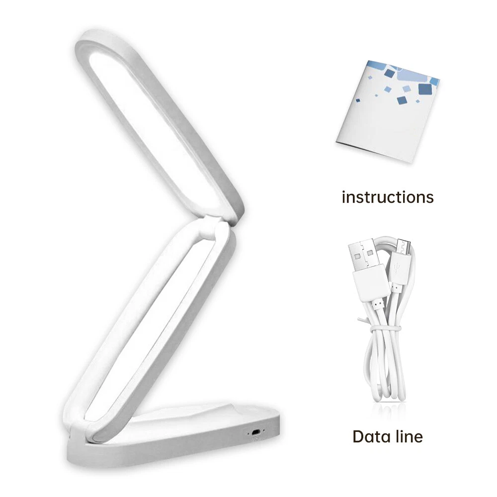 Features: Double axis folding design: The folding reading desk lamp adopts a dual axis design, allowing the lamp arm to be flexibly adjusted, easily adapting to different reading angles and heights. This design not only facilitates users to adjust the desk lamp according to their personal habits, but also saves space and is convenient for storage and carrying. LED eye protection technology: The desk lamp is equipped with LED light source, providing clear and comfortable light, reducing pressure on the eyes. LED lights have the characteristics of no flicker and no blue light hazard, which helps protect vision, especially during prolonged reading or work. No video flash available: The LED light source of the desk lamp is specially designed to ensure that there will be no flicker during use. This feature of no video flicker can effectively reduce eye fatigue and provide users with a healthier reading environment. Three lighting modes: The folding reading desk lamp provides three lighting modes, including night light mode, reading mode, and working mode. Users can easily switch between different lighting modes according to different usage scenarios and personal preferences, meeting diverse lighting needs. Long endurance capability: The desk lamp design considers portability and is equipped with rechargeable batteries that can be used even without a power source. A single charge can provide long-term lighting, ensuring continuous use even in outdoor or power outages, making it ideal for families, students, and travelers. Specifications: Color: White Material of lampshade: plastic Working power: 15w Product weight: 120G Product size: 17 * 7 * 7cm Product List: 1 x Instruction manual 1 x Reading Desk Lamp 1 x USB charger Notice: 1. Due to differences in lighting and screen settings, the color of the item may differ slightly from the image. 2. Due to differences in manual measurements, please allow for a size difference of 1-2 centimeters. On Nov 12, 2024 at 01:51:08 PST, seller added the following information: