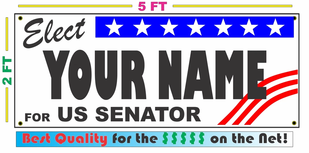 This is a BRAND NEW 24"x60" Banner with brass Grommets...We Will add a Custom NAME! This is the BEST quality for the money anywhere on net!!! Be the First Person on your block to hang a 100% Texas Made Campaign Banner for you Favorite Candidate! Remember The More you Need The Cheaper they are! Please note : Any and all estimated delivery dates are inserted by Ebay! All packages are shipped out Monday – Friday, except for holidays. It can take up to 7 - 14 Business days for the delivery of your item in the USA and 10 - 24 business days for International purchases . All Packages are shipped out USPS First Class unless otherwise specified. If you need the item quicker please let us know so that we may be able to provide a faster shipping option for an extra fee. If any extra fees or duties are charged by the postal service it is the buyer’s responsibility to pay the balance . We are not responsible for ANY overseas delays or damages or delays due to weather. We want you to be COMPLETELY happy with your purchase so PLEASE CONTACT US IF YOU DO NOT RECEIVE YOUR ITEM WITHIN THE ALLOTTED TIME PERIOD OR IF IT IS DAMAGED IN ANYWAY . We will be happy to combine shipping inside the USA and Canada. In order to receive combined shipping you must purchase all items on the same day or contact us with a list of the items you wish to purchase. WE WILL NOT ACCEPT RETURNS FOR ANY CUSTOM ITEM