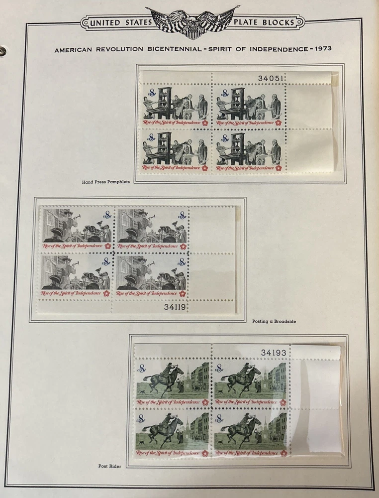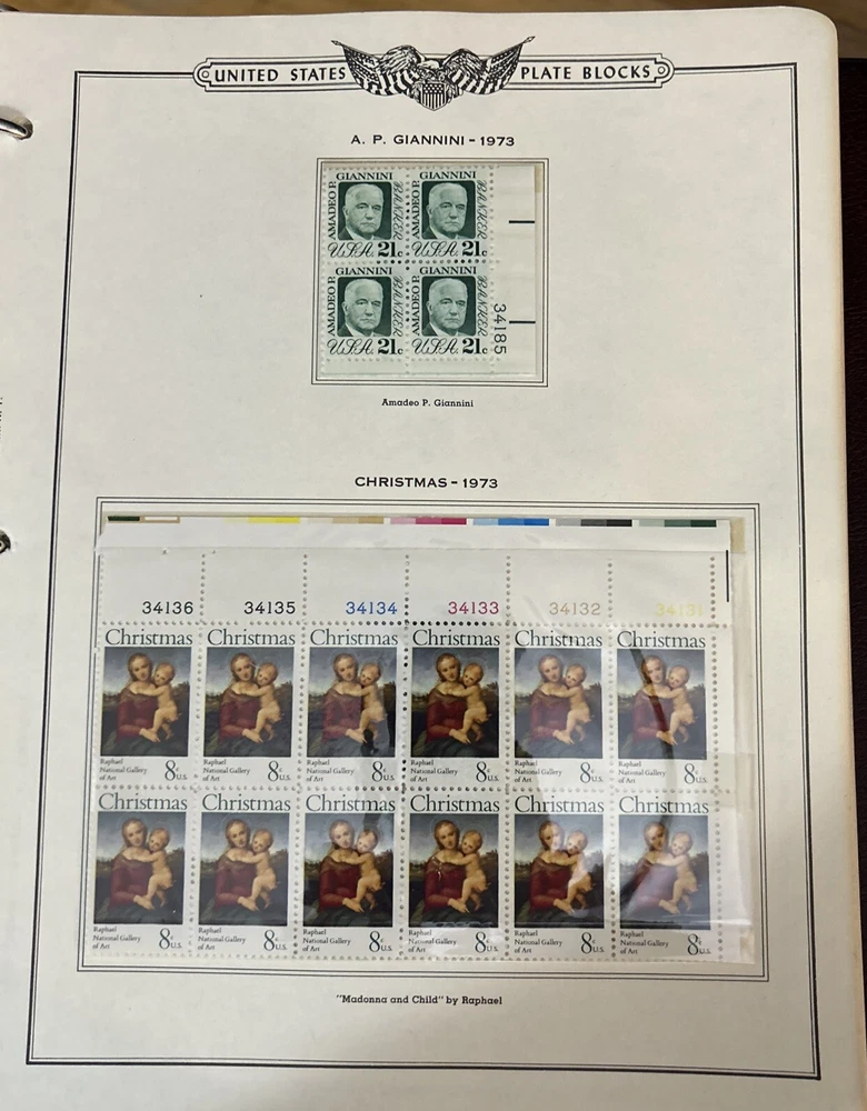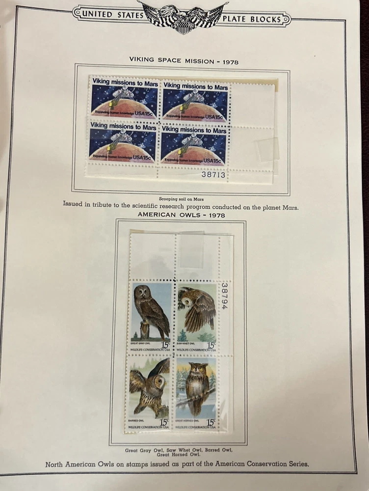 This incredible collection of US STAMPS Minkus Plate Block Album Pgs 1971-1978 is a must-have for any stamp collector. The album features a wonderful assortment of stamps that showcase various topics such as Space, Nature, Politicians, American Civil War, Seasonal, Christmas, Flags, National Emblems, and Medical and more . To the best of my knowledge The stamps are in Mint Never Hinged/MNH quality, making them an excellent addition to any collection. The album is a perfect gift for anyone who loves collecting stamps or is interested in any of the topics mentioned above. With its unique collection of stamps, it is sure to impress any stamp collector. Don't miss out on the opportunity to own this amazing collection. There is one page out of 112 that does not have stamps on it. See last photo in picture section!!!