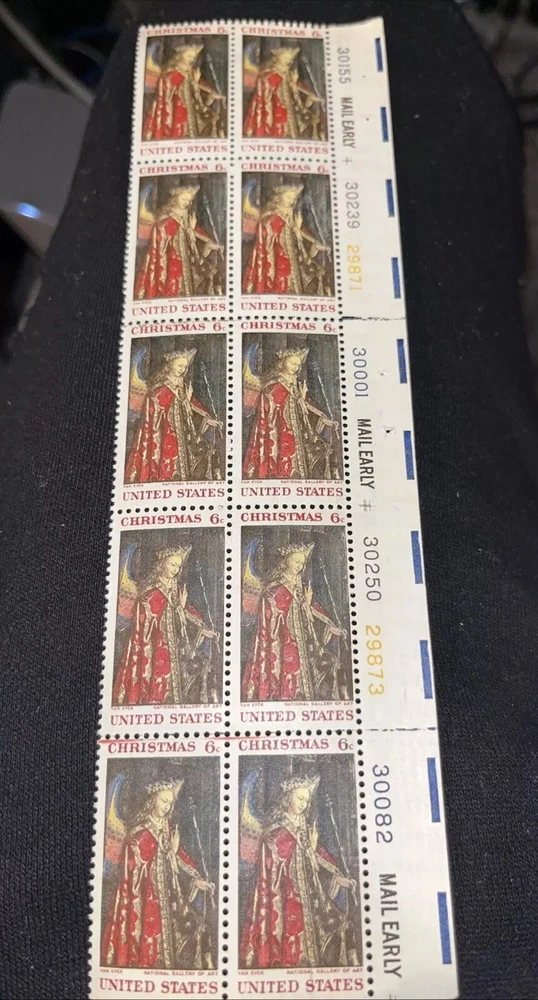 US Scott # 1363, "The Annunciation", by Jan Van Eyck, Plate Block of (10) 1968 6¢ Stamps, MNH Page numbers 30155 30239/29871 30001 30250/29873 30082
