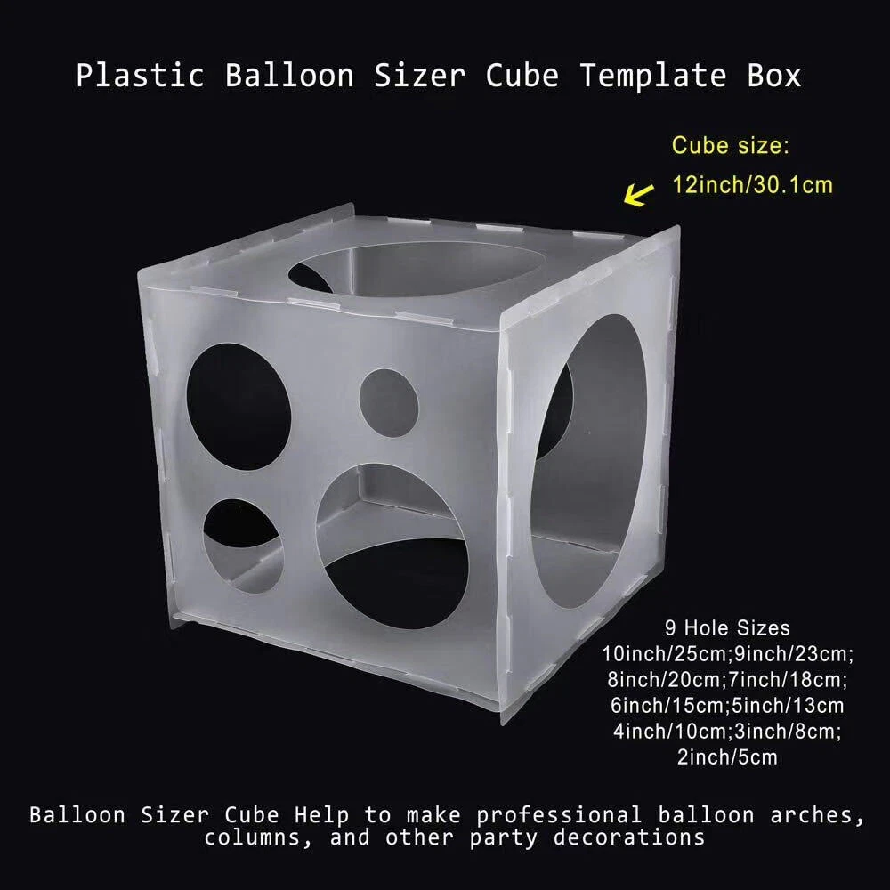 Product: ACC-SIZER-40CM-1PC 11 Holes Balloon Sizer Box Balloon Size Measurement Tool Stable 2-10 Inch For Birthday Party Wedding Party Decoration 11 Holes Balloon Sizer Box Balloon Arches Columns Make Balloon Size Measurement Tool for Birthday Party Decoration Bullet Points: 1、11 Holes: The Balloon sizer box comes with 11 balloon-sizing holes to size balloons. 2、Hole Size: About 2/3/3.5/4/4.5/5/6/7/8/9/10 inches. 3、Not Easy to Wear: Made of PP material, the sizer is not easy to wear and break. 4、Balloon Measuring Tool: The balloon sizer box is an essential balloon measuring tool for festive balloon decoration. 5、Arch and Columns: The consistent size balloons make for professional looking arch and columns. Specification: Name: Balloon Measuring Ball Box Material: PP Weight: about 90g Packing size: about 30*30*0.3cm/11.81*11.81*0.12in Measuring holes: 11 holes Measuring hole size: about 2/3/3.5/4/4.5/5/6/7/8/9/10 inches Packing List: Balloon Measuring Box*1 WARNING: CHOKING HAZARD – Children under 8 yrs. can choke or suffocate on uninflated or broken balloons. Adult supervision required. Keep uninflated balloons from children. Discard broken balloons at once. WARNING: CHOKING HAZARD – Children under 8 yrs. can choke or suffocate on uninflated or broken balloons. Adult supervision required. Keep uninflated balloons from children. Discard broken balloons at once.