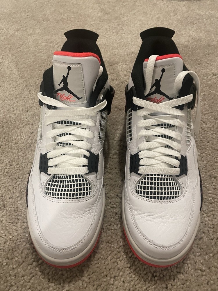 The US Size 10 Air Jordan 4 Retro Flight Nostalgia is a stylish and comfortable sneaker perfect for activewear occasions like basketball or casual outings in the spring and summer seasons. Made with leather upper material and a foam insole, this shoe offers a standard shoe width for a comfortable fit. The lace-up closure and rubber outsole provide a secure and responsive design, while the retro theme adds a touch of nostalgia to the overall look. With the signature Air Jordan brand and iconic sneaker style, this shoe is a must-have for any sneaker enthusiast.