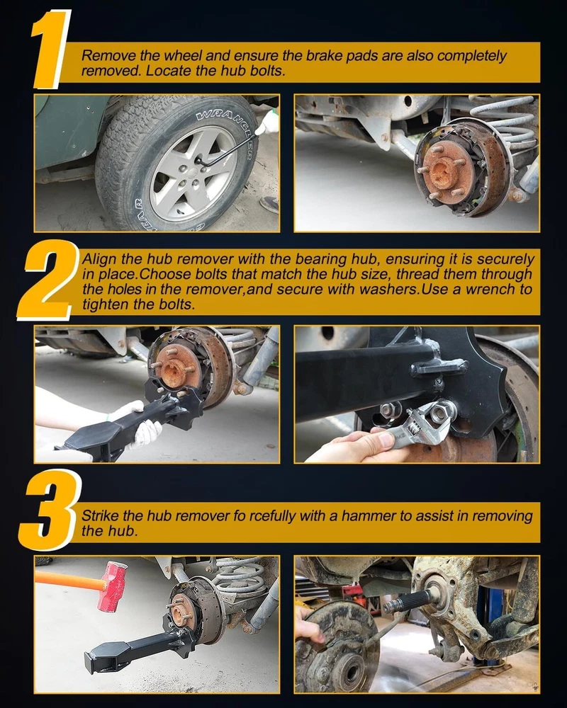 U.S.A???? Fast delivery?? Fast Shipping???? UNIVERSAL COMPATIBILITY - Designed to fit a wide range of vehicle makes and models our wheel bearing hub removal tool compatible with most 5 6 8 lug hub and is the versatile choice for mechanics and DIY enthusiasts alike ensuring a precise fit for various axle bolted hubs remove and bearing configurations. HEAVY-DUTY CONSTRUCTION - Crafted from high-quality corrosion-resistant materials our wheel hub removal tool set guarantees longevity and consistent performance. The reinforced hub shocker can withstand heavy hammer strikes ensuring reliable use even under the most demanding conditions. SuperMotor Wheel Bearing Hub Removal Tool Compatible with All Axle Bolt Hubs 5 6 8 Lug Hubs Buster Puller U.S.A???? Fast delivery?? Fast Shipping???? UNIVERSAL COMPATIBILITY - Designed to fit a wide range of vehicle makes and models our wheel bearing hub removal tool compatible with most 5 6 8 lug hub and is the versatile choice for mechanics and DIY enthusiasts alike ensuring a precise fit for various axle bolted hubs remove and bearing configurations. HEAVY-DUTY CONSTRUCTION - Crafted from high-quality corrosion-resistant materials our wheel hub removal tool set guarantees longevity and consistent performance. The reinforced hub shocker can withstand heavy hammer strikes ensuring reliable use even under the most demanding conditions. SAFETY AND PRECISION - Engineered with safety in mind our tool minimizes the risk of damage to the axle shaft or steering knuckle during the removal process. Its precision design ensures that wheel hub bearings can be safely and accurately removed and installed. COMPLETE SET FOR ALL NEEDS - Our comprehensive tool kit includes all necessary components such as a variety of nuts and bolts to accommodate different stud sizes ensuring you have everything required for a seamless wheel bearing service. ENHANCED VEHICLE PERFORMANCE - By simplifying the process of wheel hub bearing replacement our tool helps to enhance the performance and longevity of your vehicle's wheels axles and brakes contributing to a smoother and safer driving experience. The video showcases the product in use.The video guides you through product setup.The video compares multiple products.The video shows the product being unpacked.4.2 out of 5 stars Lupar Wheel Bearing Hub Removal Tool Compatible with All Axle Bolt Hubs 5 6 8 Lug Hubs Buster Puller Share: Found a lower price? Let us know. Although we can't match every price reported we'll use your feedback to ensure that our prices remain competitive. Fields with an asterisk * are required ** 01 02 03 04 05 06 07 08 09 10 11 12 01 02 03 04 05 06 07 08 09 10 11 12 13 14 15 16 17 18 19 20 21 22 23 24 25 26 27 28 29 30 31 *Enter the store name where you found this product* Please select province Please select province * 01 02 03 04 05 06 07 08 09 10 11 12 01 02 03 04 05 06 07 08 09 10 11 12 13 14 15 16 17 18 19 20 21 22 23 24 25 26 27 28 29 30 31 Submit Feedback Technical Details Additional Information Warranty & Support Feedback Item Specifics Size 15.31 x 9.29 x 5.31 inches Weight 14.1 pounds Type Floor Mats Brand Unbranded Payment If you do not have a PayPal account, to get started and buy your first item with us is very easy. Simply click on the 'Buy It Now' button and follow the eBay checkout steps. Select PayPal as the payment method you then will be given the chance to enter your card details in to PayPal's secure checkout in order to pay for your order. Shipping 2. We provide three kinds of shipping for choice. Shipping way depend on delivery address. Returns If an unit is received defective, of course we take it back or replace it. If the unit is received as expected, we must charge for our expenses if you want to send it back. We have to charge for the work of handling, retesting and restocking. Contact Us Dear buyer, Thank you for visiting my store! Our warehouses are located in many regions around the United States. According to the customer's delivery address. Use USPS/UPS/DHL logistics transportation service. Prioritize the best quality logistics solutions to transport packages. Ensure package delivery time, At the same time. Have any after-sales problems, Feel free to contact us. At your service SuperMotor DESCRIPTION PAYMENT SHIPPING RETURN POLICY CONTACT US Shop Category Store Home Other Hot Item US Klutch Welding Table Clamp Kit 4-Pcs. USD 67.99 US Grease Gun Grease Gun Battery Powered 40” Long Hose 12 000 PSI Cordless Greas USD 137.70 US 59.05"Modern Sintered stone dining table 31.5" round turntable 6pcs Chairs. USD 2187.83 SoundGuards Over Ear Jobsite Hearing Protection Headphones USD 64.70 US Kobalt 24-Volt Max-Volt 3/8-in Drive Cordless Impact Wrench (Model #672828) USD 113.88 Excellent Delivery Help & Info Payment Policy Shipping Policy Return Policy FAQ About Us New List Item APEC RO Replacement Filters Complete Set ROTL-600-PH Tankless RO System USD 182.09 SGF-CS11S Compatible Commercial Water Filter 55895-01, BGC-2200S, CELF-1M-P, (2 USD 95.80 4/5 in. x 23.6 in. x 23.6 in. 3-Dimensional Acoustic MDF Decorative Wall (4-Piec USD 92.99 Shower Head Water Filtration System 5-Settings Handheld Shower Filter in Chrome USD 129.88 HydroPerfection Filter Change Set USD 151.86 Wheel Bearing Hub Removal Tool Compatible with All Axle Bolt Hubs 5 6 8 Lug Hubs Buster Puller U.S.A???? Fast delivery?? Fast Shipping???? UNIVERSAL COMPATIBILITY - Designed to fit a wide range of vehicle makes and models our wheel bearing hub removal tool compatible with most 5 6 8 lug hub and is the versatile choice for mechanics and DIY enthusiasts alike ensuring a precise fit for various axle bolted hubs remove and bearing configurations. HEAVY-DUTY CONSTRUCTION - Crafted from high-quality corrosion-resistant materials our wheel hub removal tool set guarantees longevity and consistent performance. The reinforced hub shocker can withstand heavy hammer strikes ensuring reliable use even under the most demanding conditions. SA