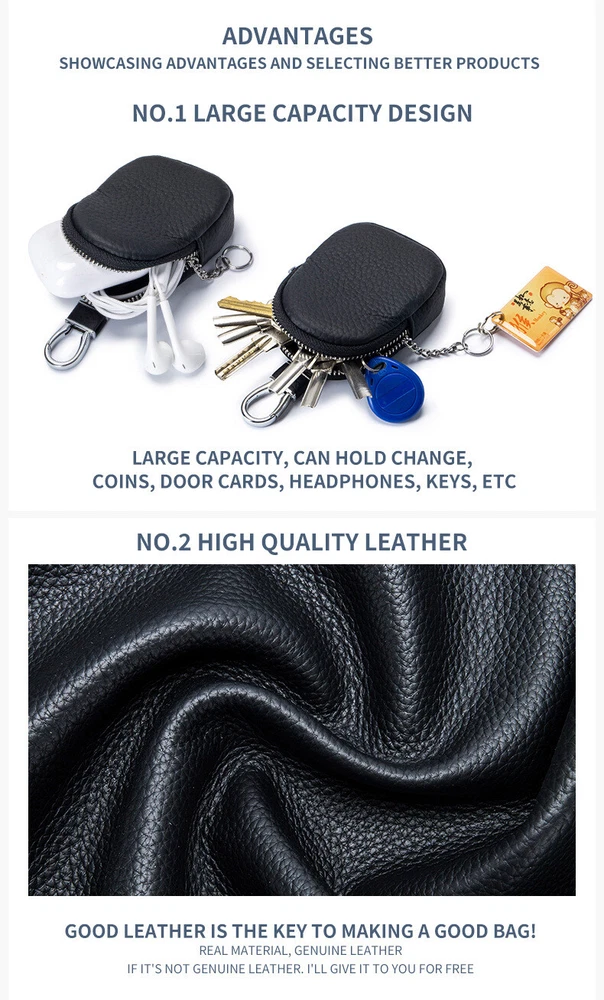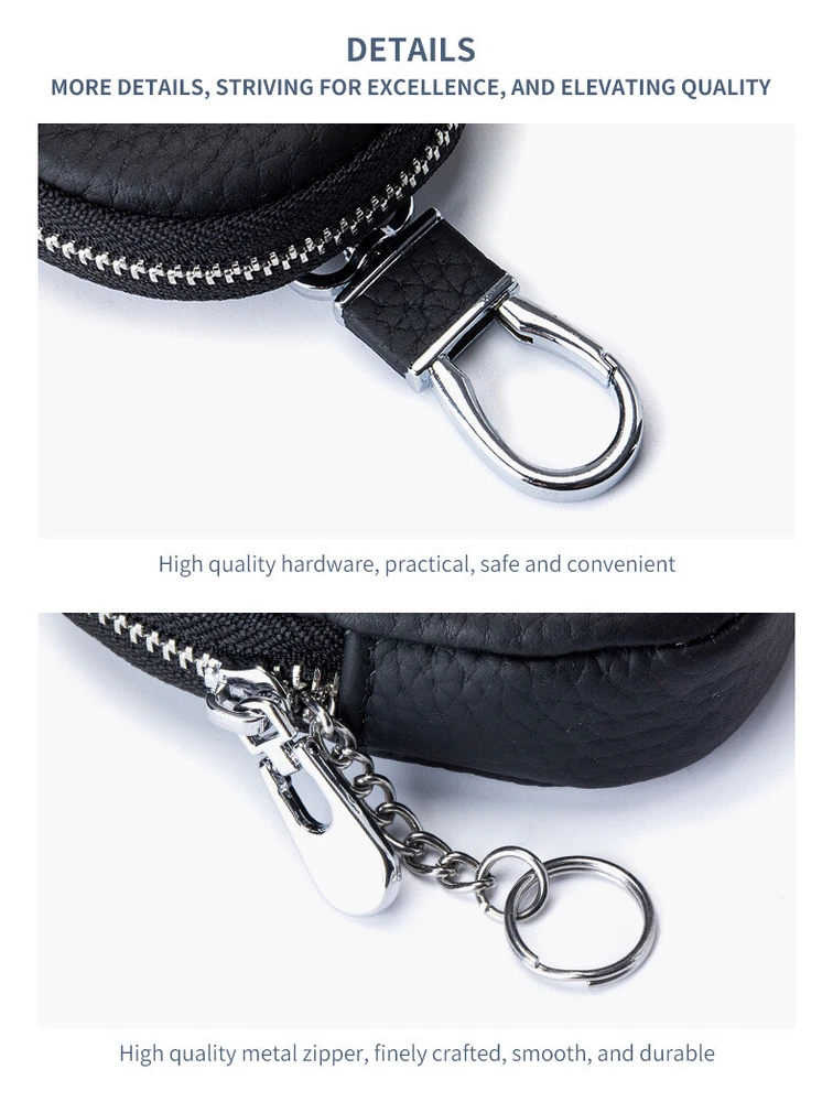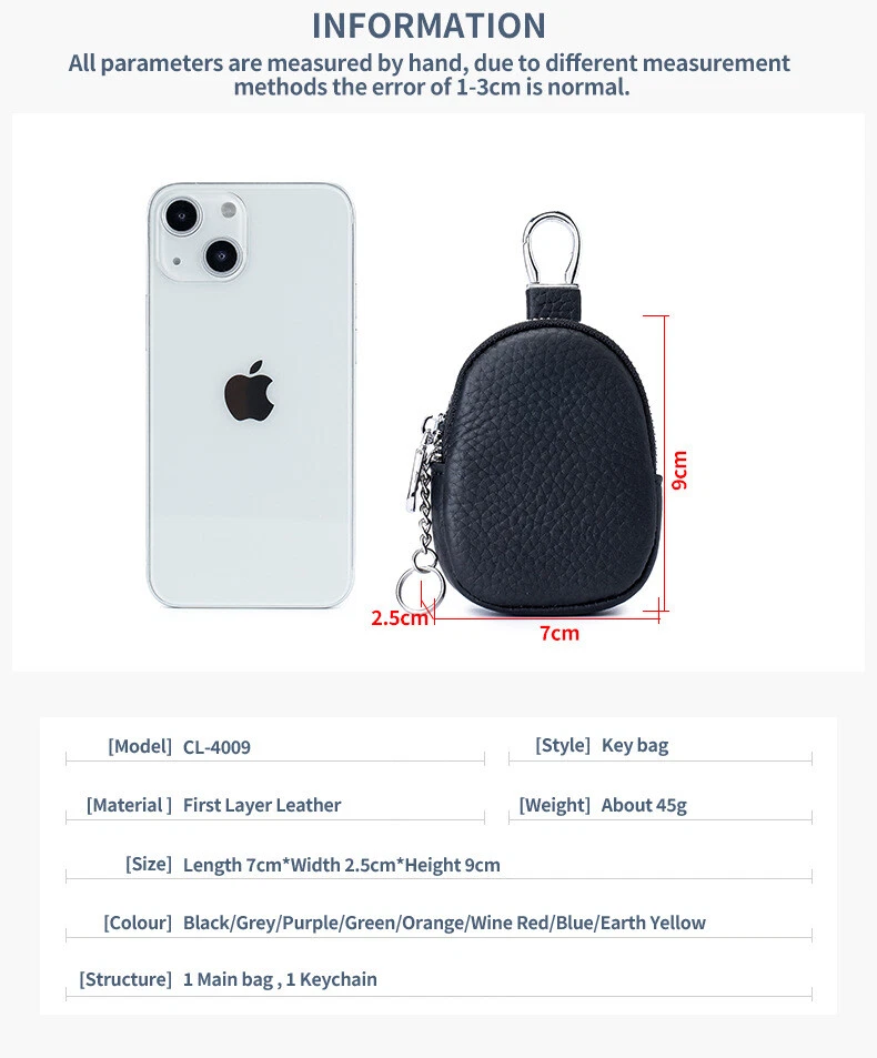 【Durable Material】: Our product is mainly made from leather which provides robust protection against scratches, scuffs, and general wear and tear, keeping the key fob looking new. Leather is known for its durability and long-lasting nature, meaning the case can withstand daily use and maintain its quality over time. 【Protective Design】: Our case is made from shock-absorbing leather materials to cushion the key fob against drops and impacts. And our case covers all sides of the key fob, including edges and corners, to protect against accidental bumps and scratches. And it's also designed to fit snugly around the key fob, preventing it from slipping out or becoming loose, thus ensuring continuous protection. 【Enhanced Grip】: The ergonomic design of the case makes it easier to hold and manipulate the key fob, reducing the likelihood of dropping it. A better grip helps prevent accidental slips or drops, which can cause damage to the key fob or make it difficult to use. The enhanced grip provides a more comfortable feel in the hand, making it easier to operate the key fob. 【Easy Access】: Our key case ensures easy and quick access to your keys at all times. We have a zipper that prevents other small items such as keys from falling out, and also allows you to remove your keys silky smooth and unobstructed. Therefore, choosing our products can bring you great convenience. 【Stylish Appearance】: High-quality leather materials contribute to a sophisticated look, making our key fob stand out. And we provide you 5 different colors to choose from, including pink, green, black, red and brown. And the size of our product is 9 x 7 x 2.5 cm, which means that our product is compact yet delicate.