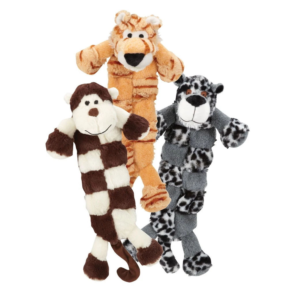Our Safari Squeaktacular Dog Toys have an amazing 12 squeakers inside for a riot of fun! Available in leopard, tiger, and monkey characters. With a long, flat body shape. Made of soft plush with squeakers inside. Each Safari Squeaktaculars Dog Toy includes a hanging loop and hangtag for easy retail display. See the Specifications tab for product details.. Made of durable polyester. With quick-release plastic buckles and nickel-plated D-ring With a long, flat body shape Made of soft plush with squeakers inside