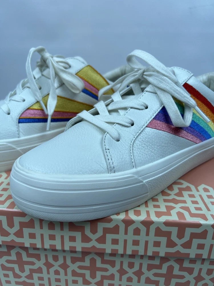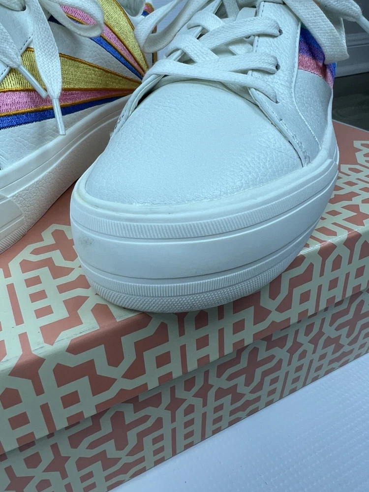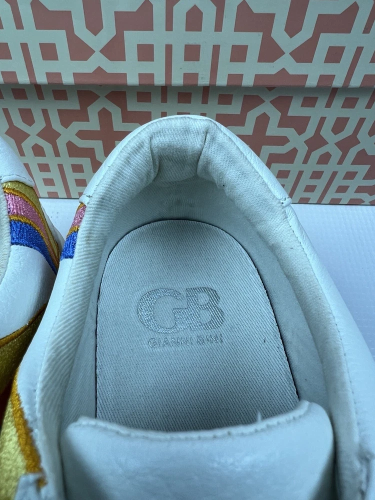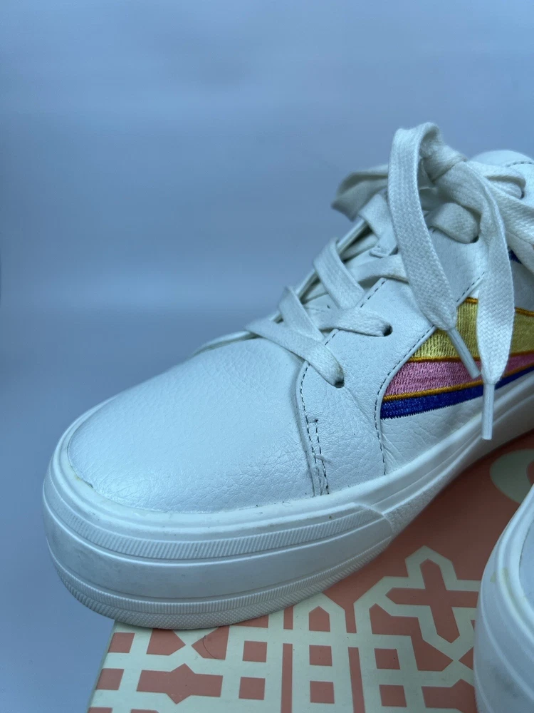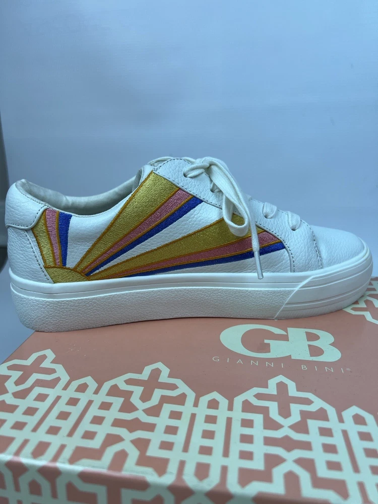 US7 GIANNI BINI Pride Rainbow Day Dreamin White Leather Sneakers Womens