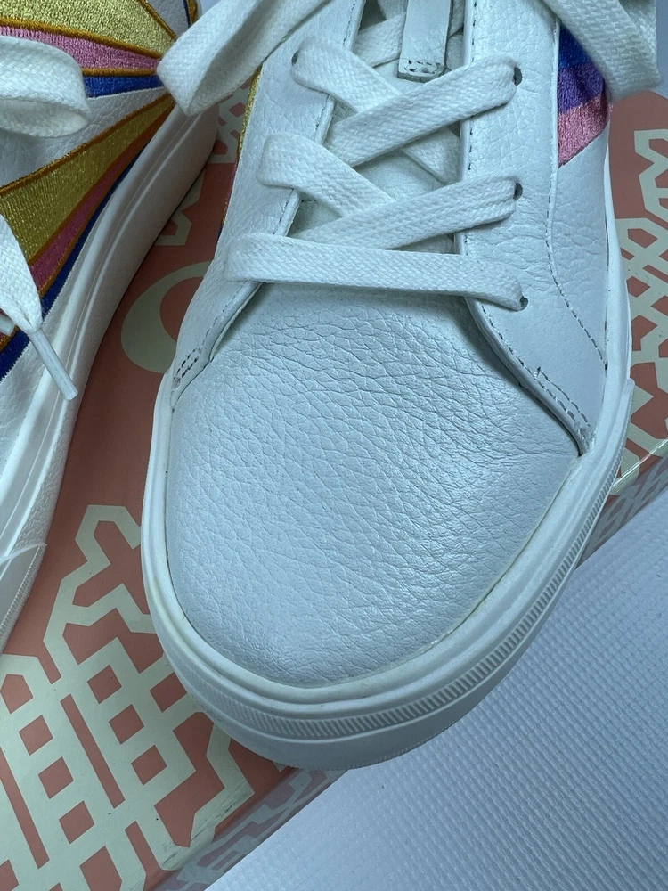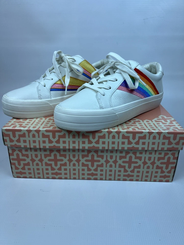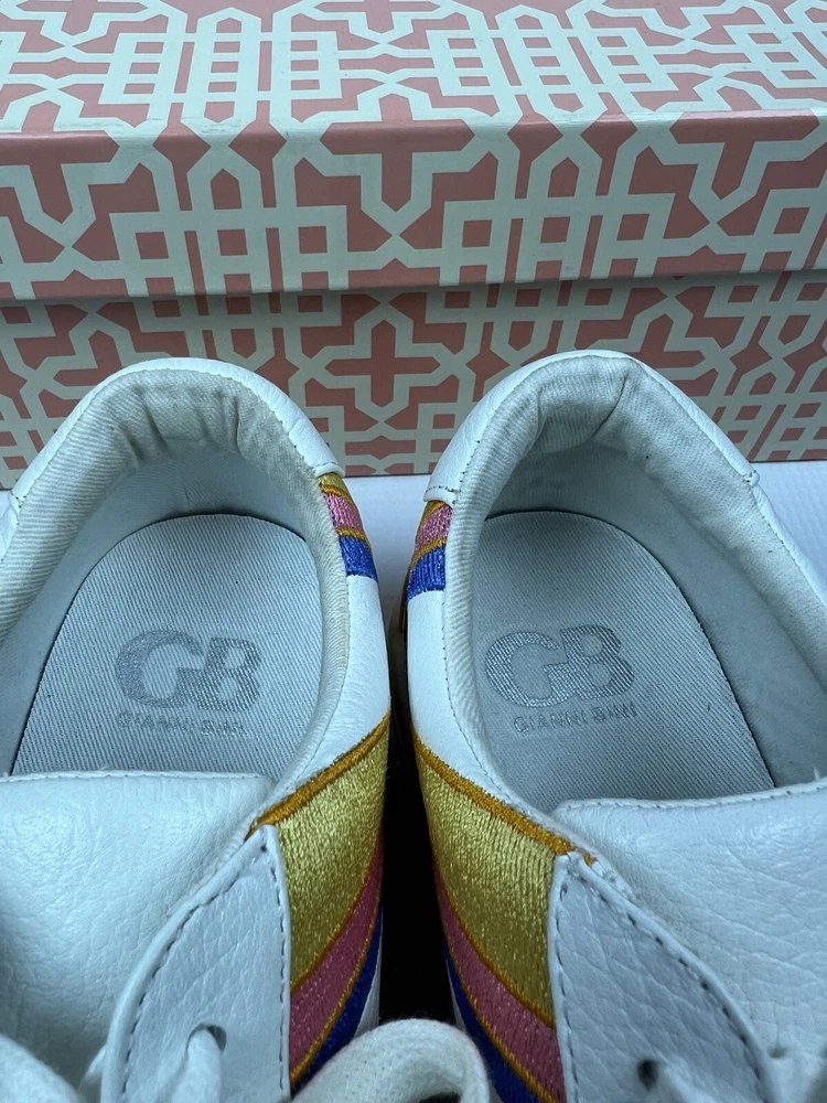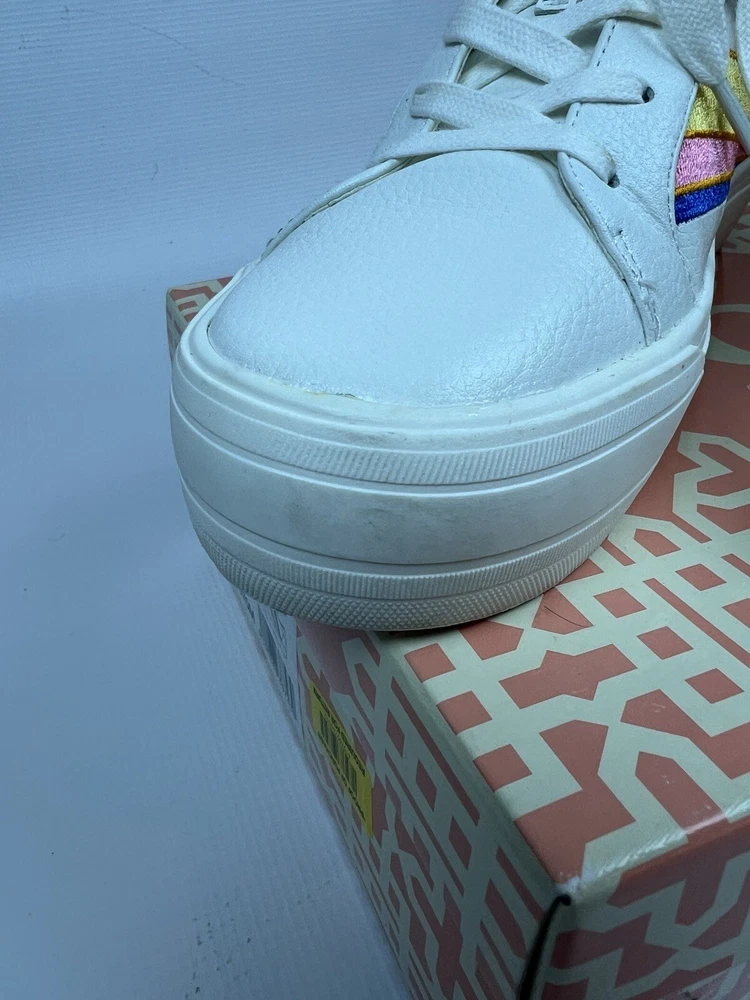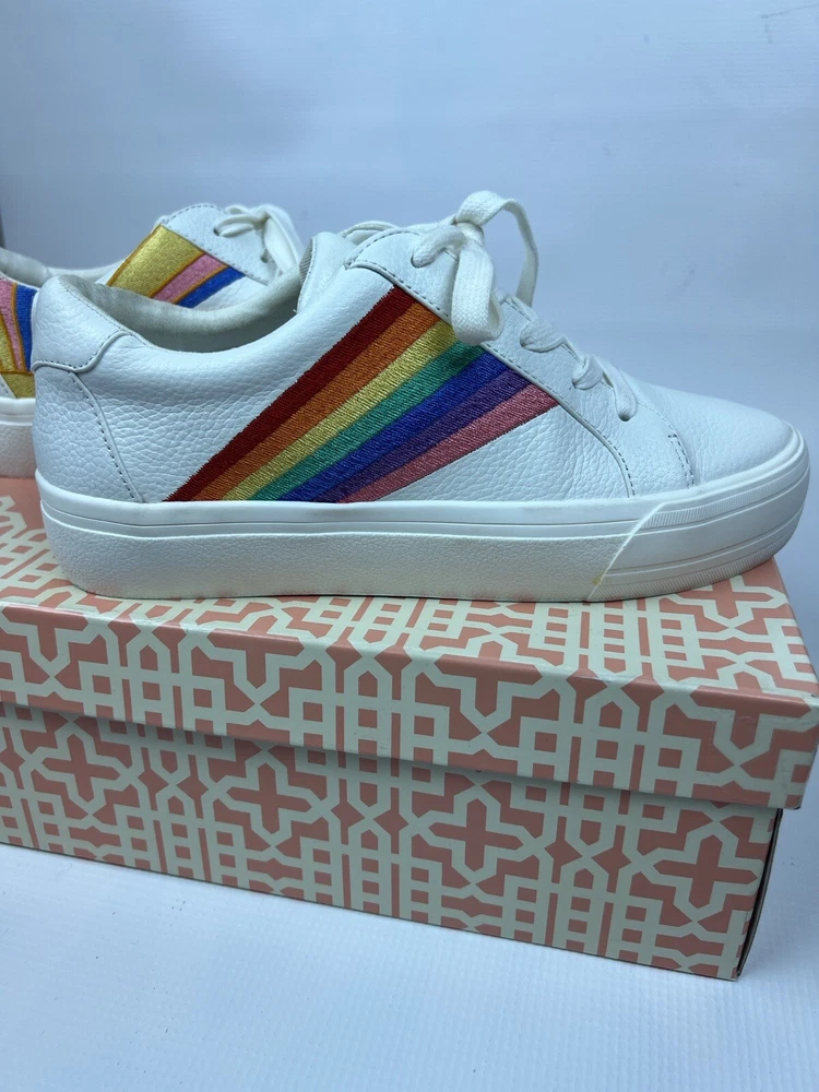 US7 GIANNI BINI Pride Rainbow Day Dreamin White Leather Sneakers Womens