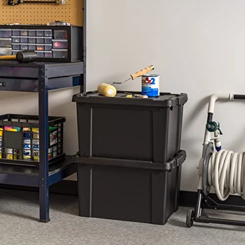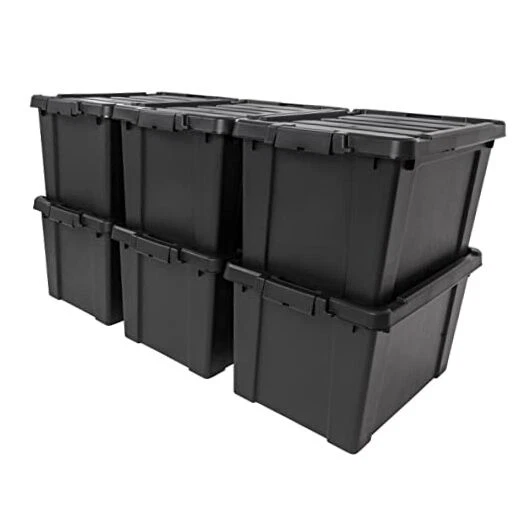 Return Policy Fast Delivery Trusted seller USA 20 Gallon Lockable Storage Bins with Lids, 6 Pack - Made in USA, Heavy Duty, Stackable Containers, Garage Organizing Bins Moving Tubs, Rugged Sturdy Equipment Utility Box - Black Product Description MADE IN USA: Quality you can trust. Our storage totes are proudly crafted in the USA using high-quality, durable materials, ensuring your belongings stay safe and secure. TIGHT BUCKLE-UP LATCHES: The latching system ensures a tight and secure fit. Ideal for storing all sorts of items like documents, food, clothes, camping, and hunting gear, etc. STACKABLE DESIGN: The grooved lid and body allow for easy, secure stacking, making it a breeze to store and transport your items in your home or vehicle. Save space and stay organized. BPA-FREE AND ACID-FREE: The material used is safe for storing items, as it's free from harmful chemicals like BPA, acids, and phthalates. TAPERED DESIGN: Easily nest them when not in use -- DIMENSIONS: 24.88"L x 17.63"W x 14.75"H -- INSIDE DIMENSIONS: 20"L x 13.75"W x 13.5"H. Shipping Returns Payment Shipping Shipping is FREE to all addresses other than APO/PO boxes in the lower 48 states. All our stock ships from US-based warehouses. Shipped via USPS or UPS (depending on location and package weight) Unless stated otherwise, all orders will ship within 24-72 hours of your payment being processed. Check our feedback to see the great reviews of FAST shipping we offer. Returns Seller does not accept returns Payment We currently accept payment via eBay managed payments only. Once payment is cleared, we will dispatch your shipment within 1-3 business days. Please refer to the "Shipping" tab for more information regarding shipping speed to your destination.