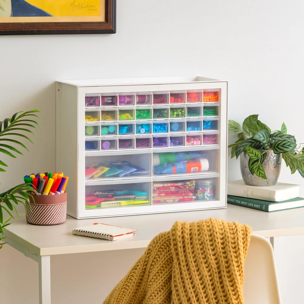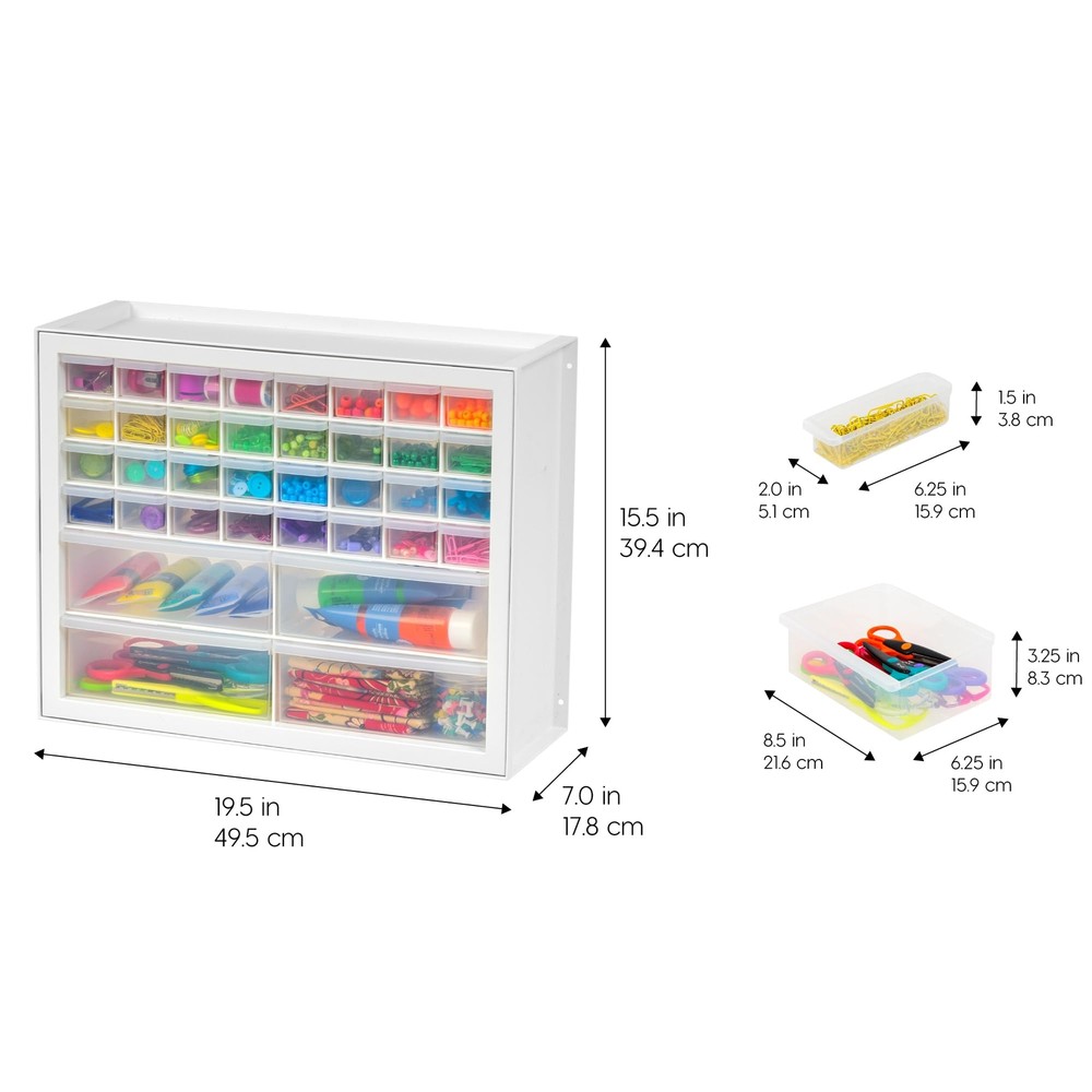 MULTI-PURPOSE ORGANIZER: Perfect storage solution tool to organize stationaries, office supplies, crafts, beads or sewing supplies, hardware, small toys, fishing gear and more. STACK OR WALL MOUNT: The cabinet’s grooves on the lid securely lock in one on top of another when stacked. It can be wall mounted using keyhole slots molded into the back of the cabinet. MULTI-DRAWERS: Sort, store and organize with these multi-drawers to identify and grab things easily and quickly. MADE IN USA: High-quality materials are used for our domestically-manufactured products. The sturdy plastic makes these durable, and the smooth glide drawers give you easy access to contents. We use recyclable material, so our products are green-circle certified. DIMENSION: 7”D X 19.5”W 15.5”H (Extra Large drawer dimensions: 6”L x 8.1”W x 3.2”H; small drawer dimensions: 6”L x 1. 75”W x 1. 5”H) MULTI-PURPOSE ORGANIZER: Perfect storage solution tool to organize screws, hardware, small parts, nuts and bolts, stationaries, office and classroom supplies, crafts, beads or sewing supplies, fishing gear STACK OR WALL MOUNT: The cabinet’s grooves on the lid securely lock in one on top of another when stacked. It can be wall-mounted and used to organize screw, hardware, tool, and small parts MULTI-DRAWERS: Sort, store and organize screws, hardware, small parts, nails, and tools with these multi-drawers to identify and grab things easily and quickly MADE IN USA: High-quality, recyclable materials are used for our domestically-manufactured products. The sturdy plastic makes these durable, and the smooth glide drawers give you easy access to contents DIMENSION: 7”D X 19.5”W 15.5”H (Extra Large drawer dimensions: 6”L x 8.1”W x 3.2”H; small drawer dimensions: 6”L x 1. 75”W x 1. 5”H)