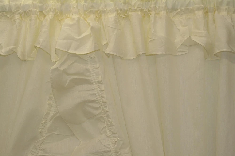 Transform your room with these beautiful ruffled curtains from Ellis Curtain. The Stacey Priscilla design features a light filtering transparency that provides a warm and cozy ambiance. The curtains come in a lovely ice cream beige color, with a 70% Polyester and 30% Cotton material, which is perfect for any room in your house. Measuring at 54" x 84", these curtains come with an attached valance and matching tiebacks. The curtains have a delightful classic country style, making them suitable for all ages, from kids to adults. This classic solid poly/cotton blend priscilla curtain pair dresses a window just right and allows for light to come in.