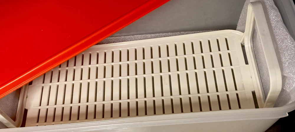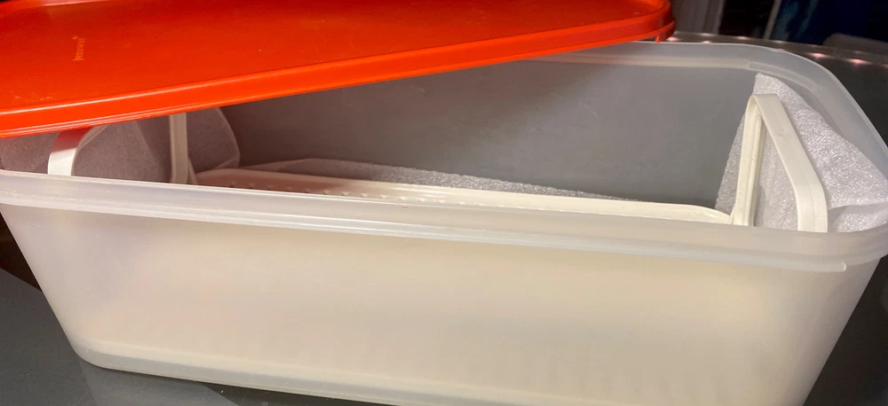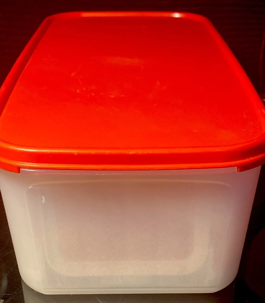 Material:PlasticCountry/Region of Manufacture:United StatesColor:RedLid Type:Air TightCapacity:25 CupsShape:RectangleCustom Bundle:NoOriginal/Licensed Reproduction:Licensed ReproductionItem Width:7.5Handmade:NoNumber of Items in Set:3Brand:TupperwareManufacturer Warranty:LifetimePart Number:1716, 1718, 1719Item Height:4.5Theme:FoodType:produce keeperTime Period Manufactured:1990-1999Item Length:15Model:Modular MatesVintage:YesSet Includes:lift out tray, Lid