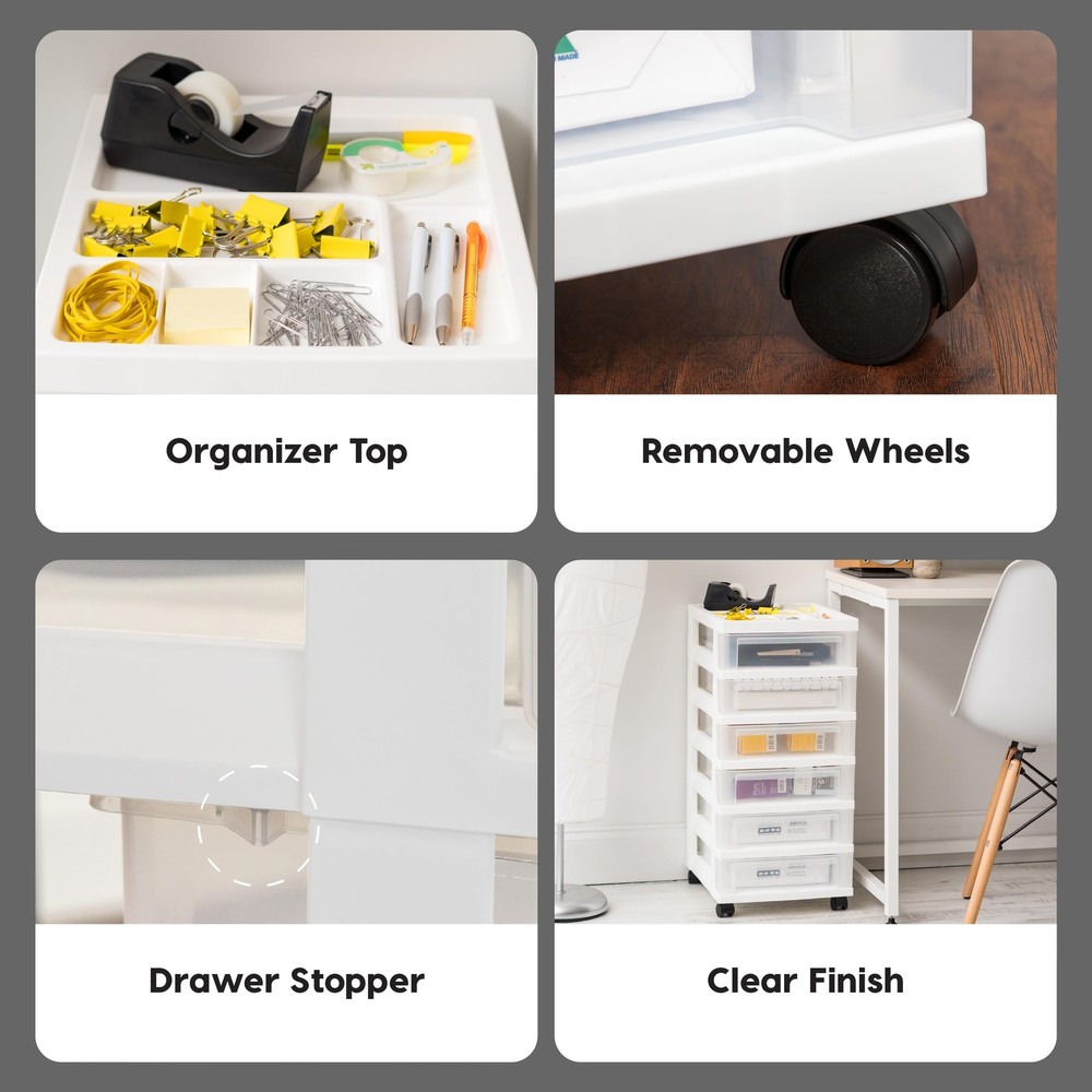 MULTI-PURPOSE ORAGNIZER: Store a variety of household items that are frequently used in the office, closet, under-desk, kid’s room, craft room, nursery, or dorm room MOBILE STORAGE SOLUTION: Removable wheels are included, can be attached to the foot of the chest so you can move it around smoothly, or remove them for secured placement MADE IN USA: High-quality materials are used for our domestically-manufactured products. The sturdy plastic makes these durable, and the smooth glide drawers give you easy access to contents. We use recyclable material, so our products are green-circle certified. DRAWERS: Drawer stops are attached on both sides of drawers to prevent drawers from falling out. Drawer dimension: 12.5”D X 9.5”W X 2.94”H DIMENSION: 14.25"D X 12.05"W X 25.94"H