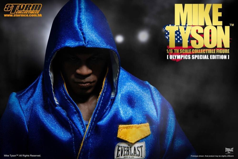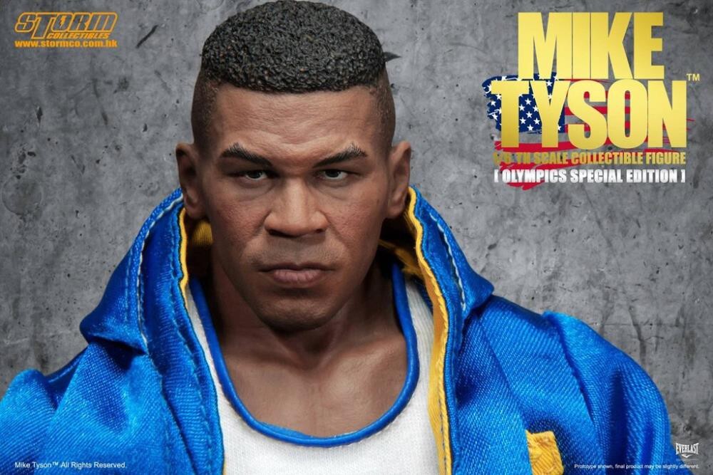 Product Features 11.8 inches (30cm) 1/6 scale Exclusive Olympic Edition Includes interchangeable head sculpt and Olympics outfit Base with name plaque Box Contents Mike Tyson 1/6 scale figure 2 head sculpts Protective head gear USA tank top Blue tank top Blue shorts Red, white, and blue flag shorts Robe Base with stand Product Description Mike Tyson won gold medals at the 1981 and 1982 Junior Olympic Games and holds the Junior Olympic record for quickest knockout (8 seconds). Tyson also won every bout at the Junior Olympic Games by knockout. This figure features Mike Tyson's outfit as he wore it at the games and he comes with a variety of accessories to recreate all of his iconic moments.