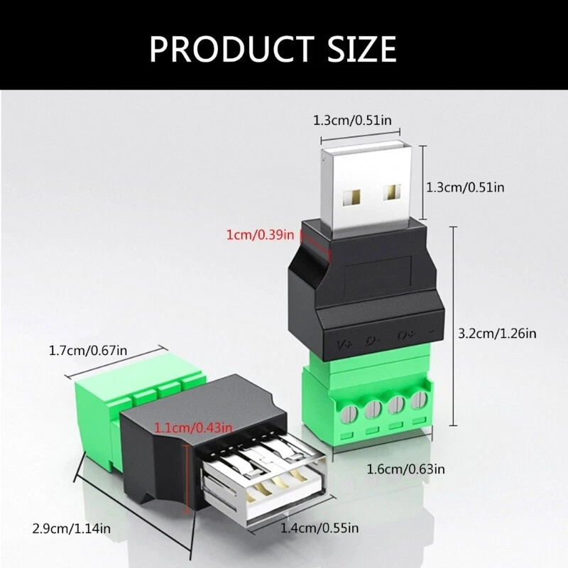 Features: USB 2.0 Solderlessly Connectors, a must for efficient data transfer and charging. USB solderless plug; usb male and female Keyboards and wiring head. Suitable for data cable, Keyboards, card reader, printer, USB fan, USB light. Support charging and 480Mbps data transmission, also can be used for repairing data cable. No soldering, plug and play, detachable and easy to use. Specifications: Item:USB 2.0 Solderlessly Connector Size:about 32x16x10mm/1.26x0.63x0.69in Male Plug; 29x17x11mm/1.14x0.67x0.43in Type:Male/Female Speed: 480Mbps Package Includes: 1PC USB 2.0 Solderlessly Connector note: Due to the problem of lighting effects, there is certain tolerances in product, please understand. Please allow 0-1cm error due to the measurement.