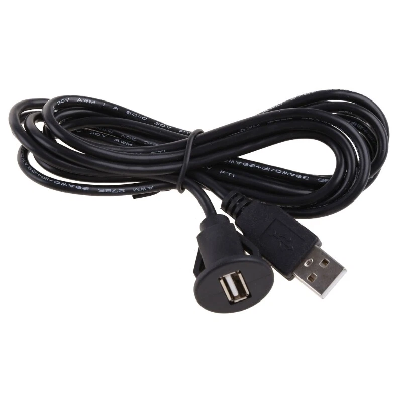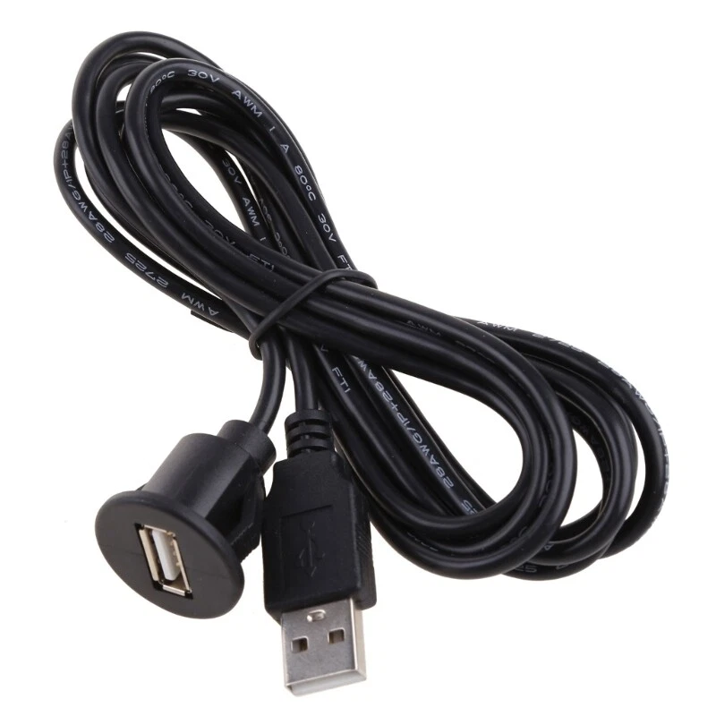 Description: brand new and high quality Description: This handy mountable USB extension can be used to either provide a flush mounted USB input on your or other surface. This USB estension mount is designed for in car use and is for any car stereo equipped with a USB input. Features: USB 1.1 / 2.0 (Hi-Speed) Cable for standard USB devices up to USB version 2.0 Designed for in car but can be used for any application Use for PC Laptop or USB charger's USB port,not only for charging ,but also can transfer data Use an existing hole or cut a hole in your dashboard and clip in the socket to flush mount it to your vehicle's Cable length: 2M/6ft Diameter:2.5cm Material:Plastic+Metal Color: Black Package includes: 1 x 2M USB 2.0 Male to female Extension Cable
