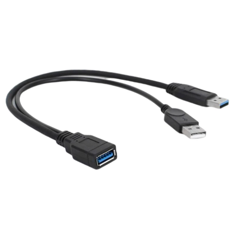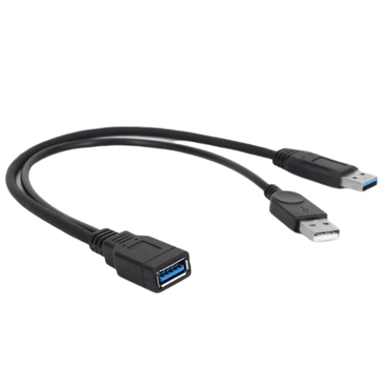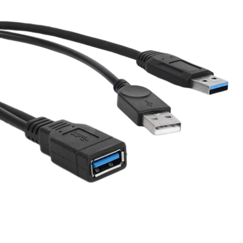 USB 3.0 Female to 2 USB Male Extra Power Data Y Splitter Extension Cable NEW