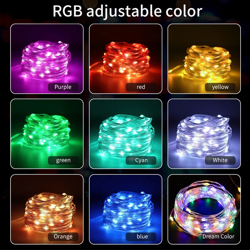 Product Description Features: Magical color changing lighting: 19 vibrant colors and 4 dynamic music modes create a dreamy atmosphere. The flexible silver wire allows you to freely create lighting designs, perfect for bedrooms, terraces, Christmas trees, and any indoor or outdoor decoration. Remote control, convenient and easy: adjust brightness, switch colors or set timers - all operations can be completed on a comfortable sofa! 16 colors and 4 lighting modes (flash, strobe, gradient, soft) for you to choose from. In addition, the memory function can save your last settings for easy use. Dual power flexible switching (USB/battery): It can seamlessly switch between USB or 3 AA batteries (excluding) according to needs. Using energy-saving LED, the battery life is extended by 50%, and it is 1.5 times brighter than standard lights. This 16 foot tall smart fairy light emits a warm glow and is plug and play, bringing infinite magic to gardens, terraces, or living spaces. Triple protection upgrade: Adopting a three wire design, stable power transmission can be achieved, and the oversized LED module can achieve instant color conversion. The high-density rubber casing provides IP65 weather resistance, offering lightweight durability and all-weather safety for indoor/outdoor use. IP65 Waterproof Starlight Lights: These battery powered light strings can be used indoors and outdoors without worrying about moisture or weather damage. Fairy lights are suitable for any place, including water, ice cubes, vases, snowmen, swimming pools, handicrafts, and more. Attention: Only the light string is waterproof, the battery pack is not waterproof. Easy to operate: The multifunctional remote control remotely controls multiple lighting modes, allowing users to design lighting scenes according to their own ideas. The USB interface is suitable for various devices such as charging heads, power banks, computers, etc. It is easy to carry and equipped with a "battery compartment", eliminating the embarrassing situation of running out of battery halfway through use. Attention: The bundled light wire will generate heat when it lights up. Please rest assured that this is normal and safe. However, we suggest that you unfold the light string for better results. Product Description: Material: ABS Length: 5 meters Power: 5W Luminous flux: 280 (LM) Input voltage: ≤ 36 (V) Lifespan: 50000 (H) Lamp beads: 50 pieces Package List: 1x light string 1x remote control 1x battery compartment (excluding battery)