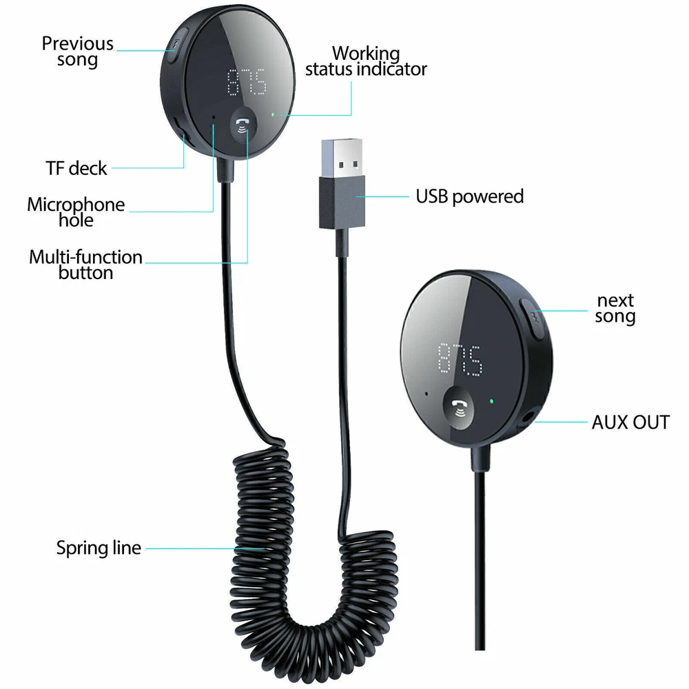 You Might Also Like New Replacement Remote Control for TCL Roku /for Hisense Roku/for Onn Roku TV 3.05 USD 4.69 USD Free shipping 35% off Metal 6 String Anchor Type Tailpiece Screws For Lap Steel SG Guitar Parts 5.26 USD 8.09 USD Free shipping 35% off Earpads Cushion Ear Pads Pillow for Jabra evolve 75 75+ 75 UC 75MS Headphones 5.26 USD 8.09 USD Free shipping 35% off New Replacement Remote Control RMT-TX102U For Sony Bravia LED LCD SMART HDTV 102 3.44 USD 5.29 USD Free shipping 35% off Replacement 2.4Ghz Wireless Keyboard Air Mouse Remote Control For Android TV Box 8.6 USD 12.29 USD Free shipping 30% off 1PCS New Replacement Remote For Roku TV TCL Sanyo Element Haier RCA LG Onn JV 3.37 USD 5.19 USD Free shipping 35% off New Tactical Electronic Shooting Earmuff Anti-noise headset Hearing Protection 24.28 USD 34.69 USD Free shipping 30% off Guitar Strap for Acoustic Electric Guitar / Bass / Ukulele Black Nylon 2.66 USD 4.09 USD Free shipping 35% off The Animal Pattern Cookie Mold Kitchen Carving Gingerbread Wooden Molds 4.87 USD 7.49 USD Free shipping 35% off Replacement Ear Pads Cushion Earpads Earmuffs for Bose QuietComfort QC35/QC35 2.98 USD 4.59 USD Free shipping 35% off Guitar Capo Trigger Release Guitar Alloy Capo Electric Acoustic Alloy Clamp US 2.79 USD 4.29 USD Free shipping 35% off Recoil Starter Pulley Pawl Rope Set For Stihl 023 025 MS210 MS230 MS250 Chainsaw 3.24 USD 4.99 USD Free shipping 35% off Product Description If you have any questions, please contact customer service first, do not open disputes easily, thank you! Features: Bluetooth 5.0: Bluetooth 5.0 technology offers high quality audio sound, both in playing music and answering calls; A combination of lossless audio transmission and noise cancelling technology ensures that music and phone calls are delivered with superb clarity and precision. Hi-Fi stereo audio, clear and good sound effect. Easy and simple to upgrade your old-style speaker or car stereo system to Bluetooth hands-free wireless audio. Multi-Function & Hands-Free: Play, Pause, Previous song, Next song; Answer and reject calls; High quality microphone is built in to the receiver unit, the hands-free car kit provides a simple solution for answering and receiving phone calls and streaming music from your Bluetooth enabled phones while on the going. Safe Driving: High quality microphone is built in the unit, when someone is calling while you are driving, simply press the phone call button and speak with both hands on the wheel, which ensure you safe driving. Support TF card MP3 music play. Directly plug and play. FM Transmitter: Support FM frequency 87.5, 95.0 and 108.0 mhz. If your car does not have 3.5mm Aux-in port, you can use it as a FM transmiter to enjoy music from your cell phone or tablets through your car or home stereo speaker system. Wide Compatibility: Compatible with for iOS, for Android and for Windows. Supports for Siri/ for Google voice. Work with any system that has AUX 3.5mm headphone input jack such as cars or home audio systems, av receiver, amplifier. Quick pairing through Bluetooth devices. Specifications: Connectivity: Bluetooth, AUX, FM USB Input: 5V Bluetooth Version: V5.0 Bluetooth Transmission Distance: 10M Transmitting Frequency : 87.5~108.0MHZ TF Card: ≤32G Audio Format: MP3/WAV/FLAC/APE/WMA Spring Wire Length: 1.2M Package include: 1 x Bluetooth Receiver Transmitter Payment Shipping Contact Us We accept paypal payments and all payments authorized by eBay. 1.We ship to your eBay or Paypal address. Please make sure your eBay and Paypal address is correct before you pay. 2.Items will be shipped within 1-2 business day when we received payment. 3.Delivery time depends on destination and other factors We strive for 100% customer satisfaction! Postive Feedback is very important to us. If you have any questions, please feel free to contact us via "Ask seller a question" , we will reply your email within 24 Working hours. Payment We accept paypal payments and all payments authorized by eBay. Shipping 1.We ship to your eBay or Paypal address. Please make sure your eBay and Paypal address is correct before you pay. 2.Items will be shipped within 1-2 business day when we received payment. 3.Delivery time depends on destination and other factors Contact Us We strive for 100% customer satisfaction! Postive Feedback is very important to us. If you have any questions, please feel free to contact us via "Ask seller a question" , we will reply your email within 24 Working hours. powered by