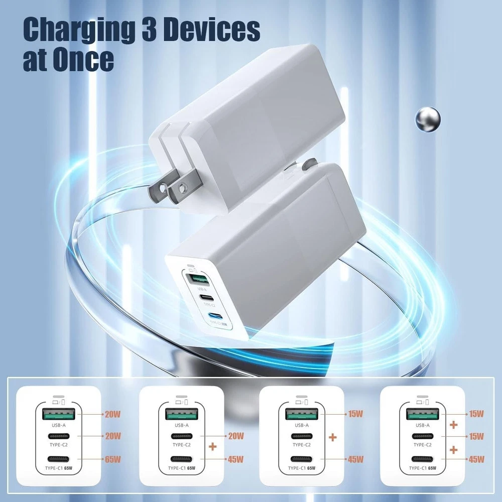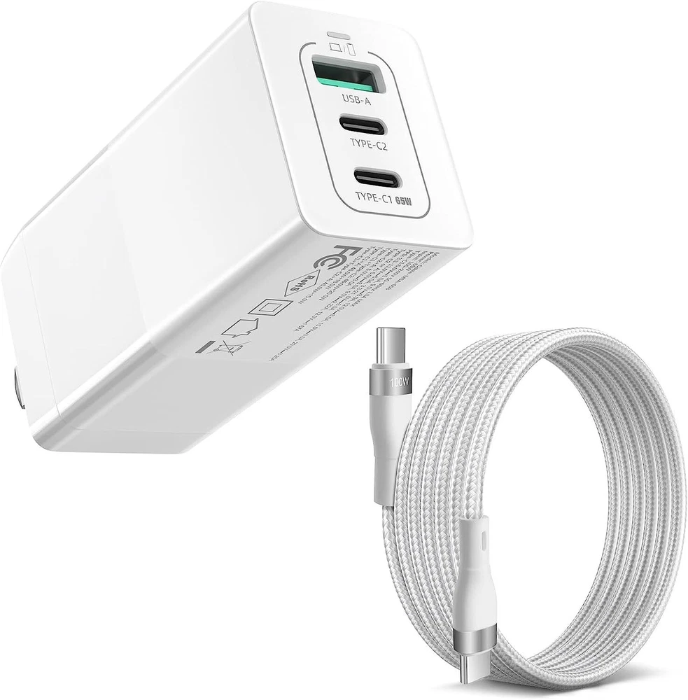 - Brand New - Never Used - Questions: Feel free to ask any Questions - BOX: Never Opened - DESCRIPTION: • [What You Get]: 65W USB-C GaN Power Adapter and 6 FT USB C Cable. If there are any problems with the product, please feel free to contact us and our service team will provide you with a satisfactory solution within 24 hours. * [3-Port Wall Charger with Cable] Designed to deliver the optimal power output to charge various devices at full speed. 2 hours to fully charge your laptop, compatible with all USB-C laptops and other USB-C port device. No need worry about not enough charging ports for your devices. * [GaN Technology]: Our GaN charger is faster, smaller and with less heat, while designed with advanced charging protection for your safety. Intelligent Power Dispenser System intelligently reallocates power to protect and prolong the health of your device. * [Broad compatibility]: USB-C GaN Charger 65W. Connect USB Type-C enabled devices (Laptops, Tablets & Phones) with standard USB Type-A enabled devices (car/wall charger, external battery power bank, etc.) * [Travel Worry Free, Compact Design]: With advanced GaN chip, MenoSupp compact 65W USB-C charger is smaller, lighter and easier to carry. A foldable plug offers more possbilities for you. - OFFERS: Reasonable offers are considered, LOWBALLERS, Best price and Lowest askers will be ignored - all sales final/no refunds/ no exchanges/ no returns - Disclaimer: I do not own the brand's trademarks, logos, pictures, or products posted. I do not intend to infringe on copyright. I find such content available on the internet. Contents are considered fair use. -Laptop Charger, 65W GaN USB C Charger, 3-Port Fast Charger and 100W Type-C Fast Charging Cable, Foldable Wall Charger Suitable for Simultaneous Use on Laptops, Tablets and Phones