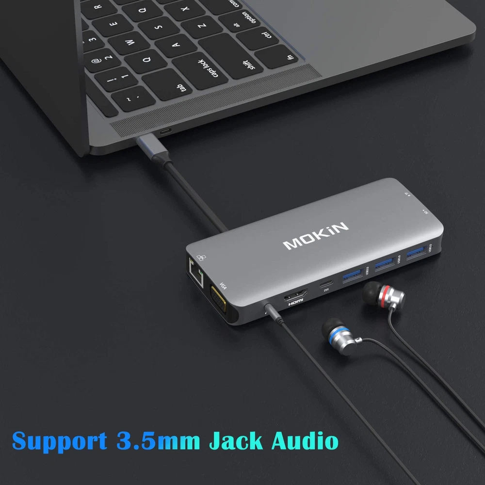 USB C Hub Multiport Adapter - 10 in 1 Portable Dongle with 4K HDMI, VGA, Ethernet, 3 USB Ports, Audio, PD Charger, SD/Micro SD Card Reader Compatible for MacBook Pro, XPS More Type C Devices. 10 in 1 Design & Massive Expansion: USB C Hub Multiport Adapter Crystal-Clear 4K HDMI Output and VGA, USB C Power Pass-through port, High-Speed Charging,3 USB 3.0 ports with 5Gbps transfer speed ensuring quick syncing and file sharing, 2 SD card slots (one Micro SD), Gigabit Ethernet port(10/100/1000), 3.5mm Audio, USB C adapter possible to connect any devices with USB - C ports —All possibilities in one hub. Easy to Use: Macbook adapter USB C to HDMI Plug and play, there is no external drivers or power required(Due to the power supply limit of the laptop, some high-power devices may not boot up) EMI protection&Portable: Macbook dongle EMI protection to prevent interfere with wireless devices, lightweight and appropriate size to carry in your laptop bag when traveling. Unibody aluminum alloy exterior, ionized finish, high-quality manufacturing and durable. Incredible Compatibility: USB C Adapter to HDMI Compatible with cell (DP Alt Mode): Samsung Galaxy Note S8/plus, S9/plus, LG G5/V20, and Huawei high-end series. Also compatible with the latest laptops and smart devices with USB C port: Mac book 12”/ Pro, Mate Book X, MI Air 12.5/13.3, iPad Pro 2018, Google Chromebook 2016, Apple MacBook, Apple MacBook Pro, Apple I Mac/ I Mac Pro (21.5 inch, 27 inch), Google Chromebook Pixel, Dell, as US, HP, Lenovo, and many other Type C laptops. Your satisfaction guaranteed is our primary policy: Offering 30 days money back along with 18-month manufacturer’s .