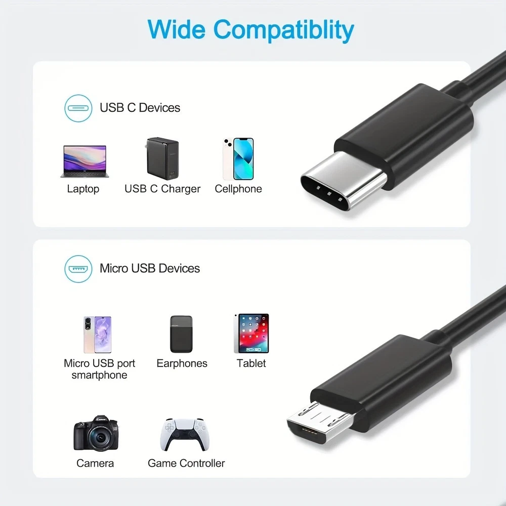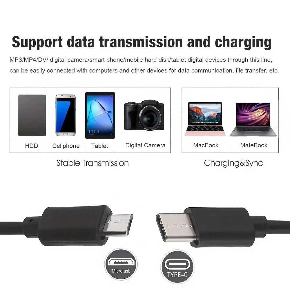 EDEKOY 1m 39.37in High-Quality OTG Data Cable 5V Black Durable Mini 5P to Type-C