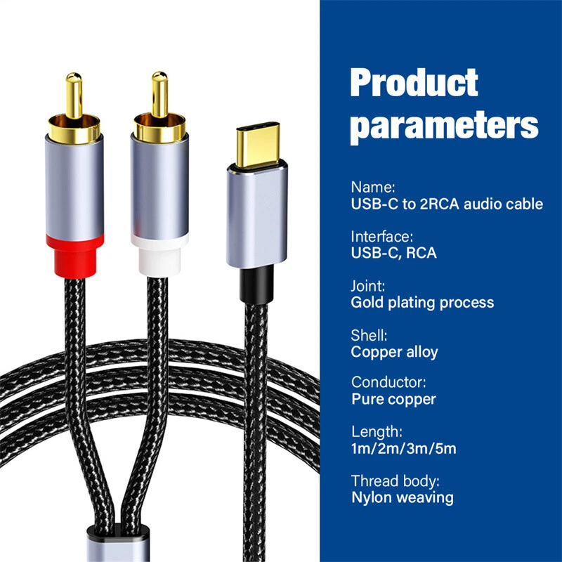 USB C to RCA Audio Cable Type C to 2RCA Jack Adapter Stereo Speaker Cord 5m 3m