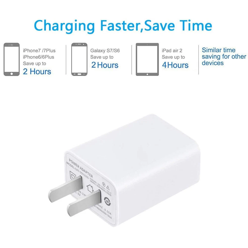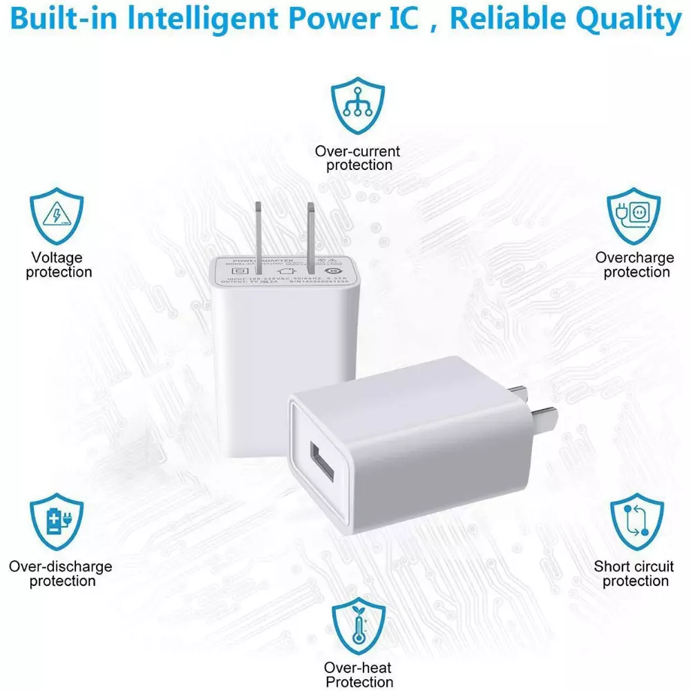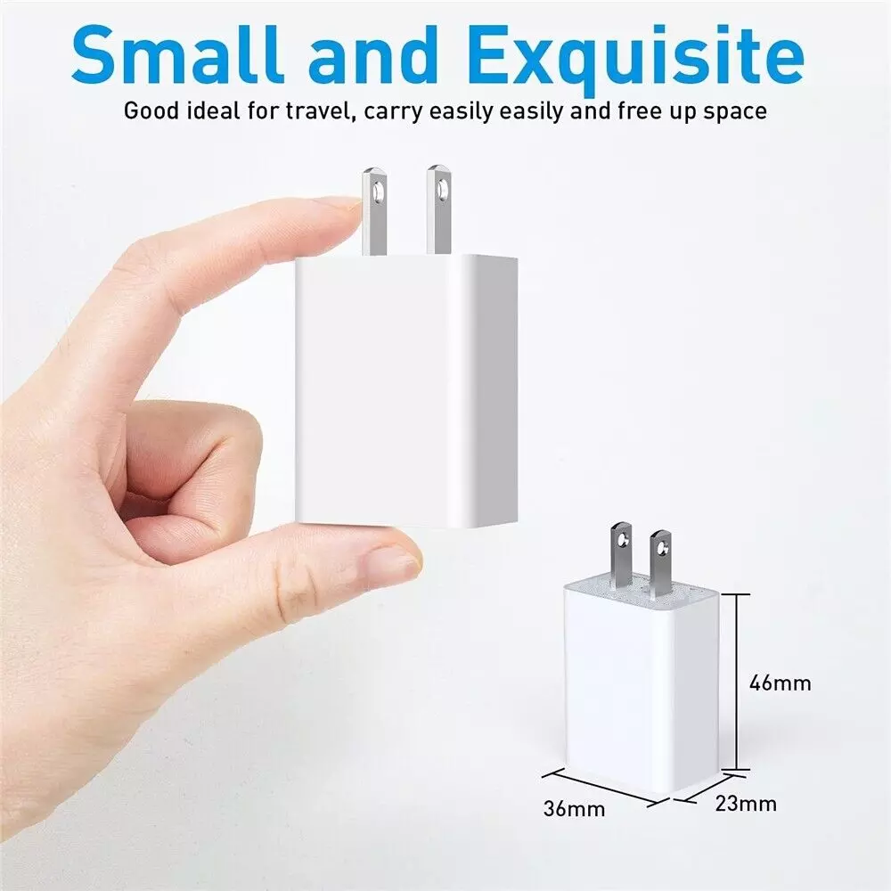 Product Compatibility: Compatible with all USB cable charging devices.Such as iPhone11/X/8/7/7 plus/6/6 plus 5S/5/4S, Pad Pro/Mini/Air,Samsung S8/S7/S6/S5/S4,Note 4/Note 3,Google Nexus,HTC.LG Nokia.Motorola. Reliable Quality: Intelligent circuit design,can protects against short circuiting, over-heating, over-currents, and over-charging, Charging stops when battery is full Easy to install: this adapter allows charging at home , in the office,or in the hotel.Simply connect with your phone USB cable,and plug into a electrical socket,then it working Product characteristics: Wide range 100 - 240V AC input Available in all country,lightweight perfect for travelling,and 2A high charging speed Specification: USB Output: Single USB Port Input: AC100-240V 50/60Hz Output: DC 5V 2A Dimensions: 35mm x 23mm x 46mm Color: white Package Included: 1/2/3 x Wall Charger Adapter Tips: -Charging speed also concern with battery capacity,it charging faster for small battery than larger one. -it is normal condition for the wall charger get a little hot when it working