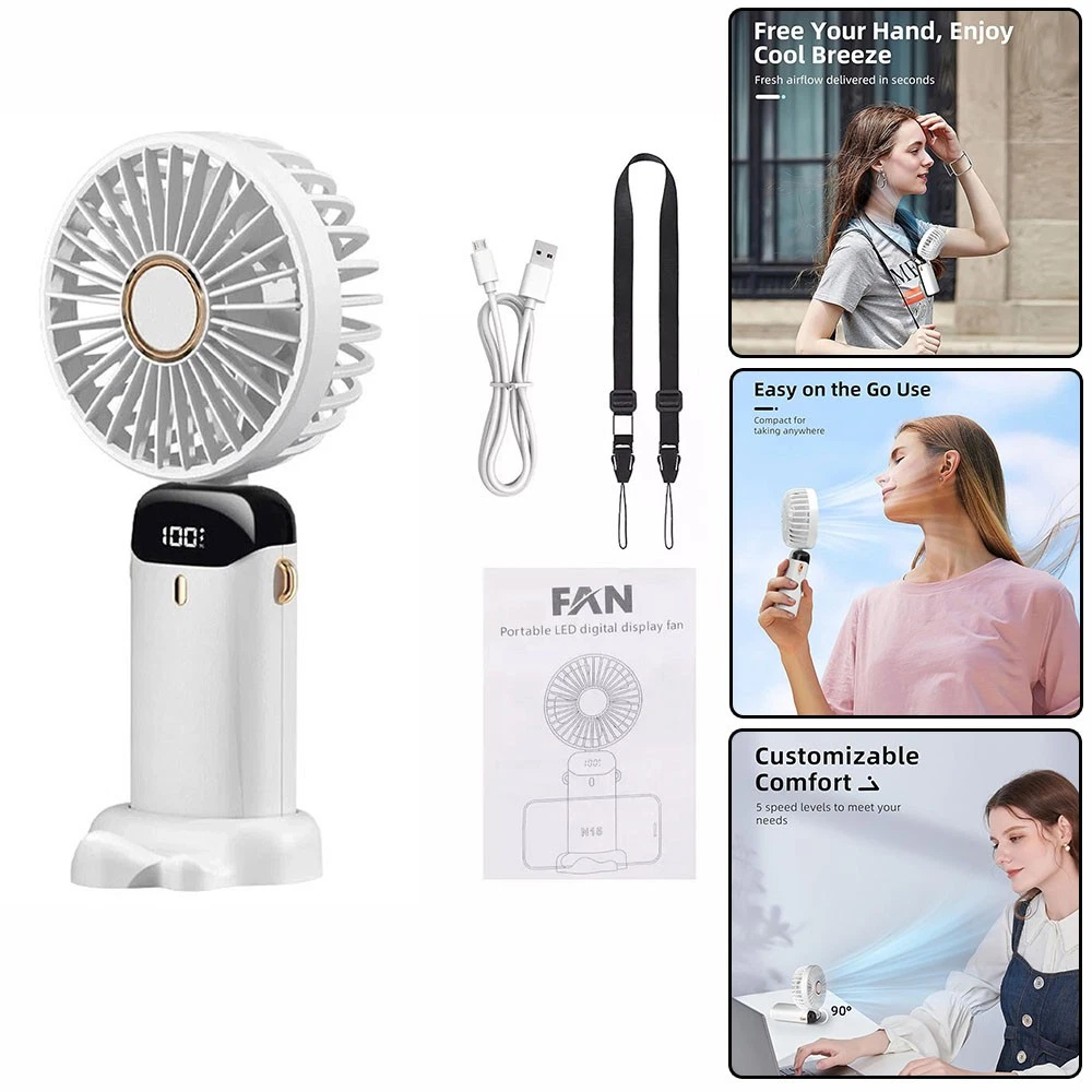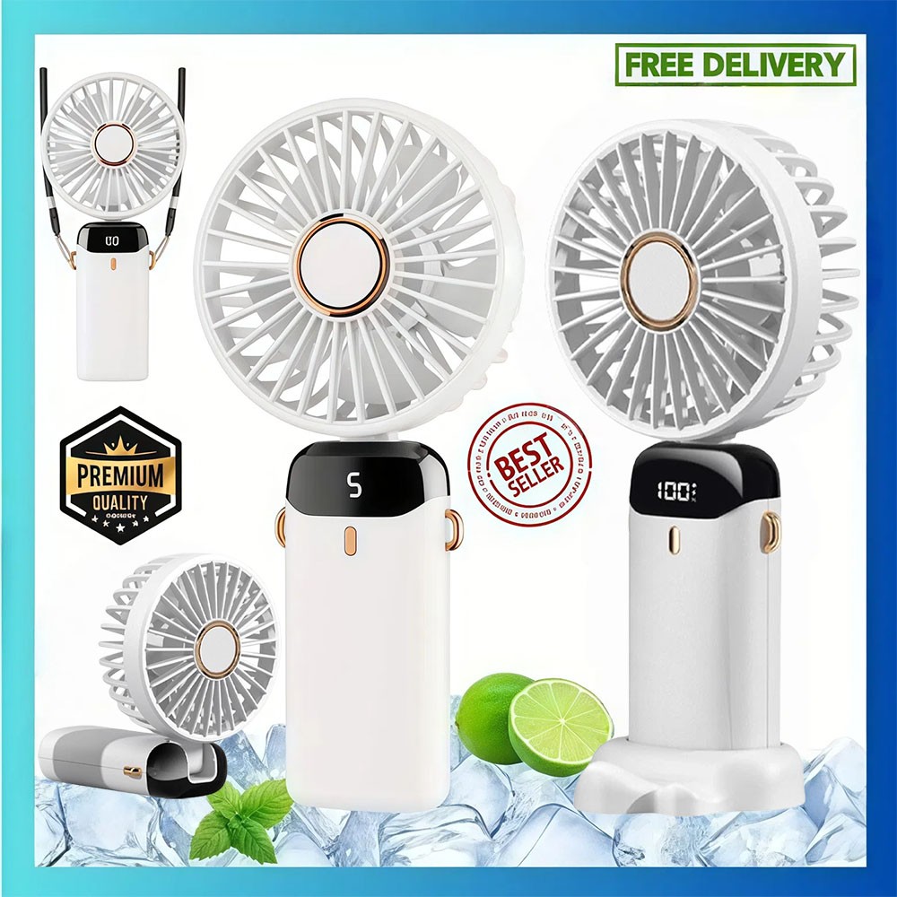 Portable Handheld Turbo Fan with Ice Cooling, 10 000mAh Rechargeable Personal Fan, 100-Speed Wind, Built-in Type-C Cable, LED Display,135° Tilt Foldable for Desk/Neck/Travel-white 【5-Second Rapid Cooling】 This handheld fan is equipped with a uniquely designed semiconductor cooling plate that activates instant 5-second cooling at the touch of a button, forming visible frost and water droplets on the cooling surface. The skin-friendly material delivers continuous sub-zero cold to your face and neck, combined with powerful airflow for immediate relief in sweltering heat 【10,600+ RPM Turbo Power High Speed Airflow】 Utilizing aviation-grade turbo fan technology, this portable handheld turbo fan generates an intense 15m/s (33.6 mph) wind speed, covering a 3m range—3x stronger than standard blade fans. Experience instant heat dissipation with penetrating airflow for wide-area cooling 【10000mAh Large Battery + Power Bank Function】 The rechargeable handheld fan features a built-in 9000mAh long-life battery for all-day operation without frequent charging. 12-48hr runtime (varies by speed). A Type-C port allows reverse charging for your phone, making it ideal for outdoor activities or emergency power needs 【100-Level Stepless Speed Control + LED Display】 The stepless knob enables precise adjustments in 0.1 increments, with an LED sc reen showing real-time wind speed (1-100 levels) and battery life. Customize your cooling experience with unmatched precision 【3 IN 1 Multi-Purpose Design】 Adjust to a maximum 135° tilt angle to use as a desk fan or hang around your neck as a neck-mounted fan—versatile cooling for every scenario Color box plastic packaging, high-end, beautiful and generous, is the best choice as a gift!