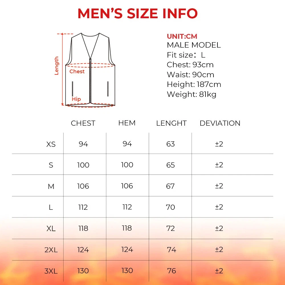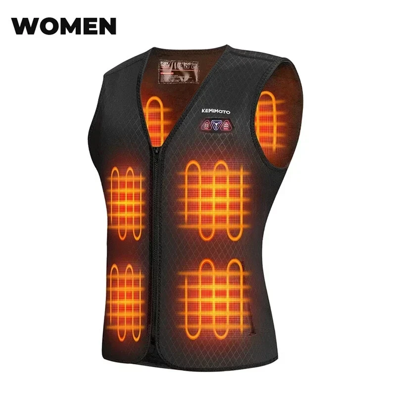 Specifications Surface material: diving cloth Lining material: crystal velvet Heating wire: carbon fiber Power: 5V/2A Heating area: 8 heating areas Gender: Men Package 1x Heated Vest (Battery not included) ②WOMEN'S HEATED VEST Features 1.8 Heating Zones: Our heated vest features 8 heating zones (chest 2, stomach 2 and back 4), providing you with 360-degree warmth. 2.3 Heating Settings: Easily adjust to your desired temperature with three heating settings-high, medium, and low-controlled by a simple button. 3.Light Off Function: Choose to turn the lights on or off based on your preference, catering to different user needs. 4.Adjustable Heating Zones: Unlike other heated vests on the market, ours comes with two control buttons. You can select the heating zones you need-chest and abdomen or back. This promotes blood circulation and alleviates muscle tension in different areas. 5.Soft Material: Made with ultra-soft fabric, our vest keeps you warm and comfortable. It's thin, lightweight and stretchy, making it perfect to wear under other clothes or jackets for warmth and style. 6.Easy to Care: The vest is machine washable and hand washable for your convenience. 7.Easy to Use: Simply connect to a 5V/2A power bank to use the heated vest without any hassle. Compatible with most 5V/2A battery on the market (Battery not included) 8.Perfect Gift for Family and Friends: Ideal for skiing, motorcycling, fishing, or other outdoor activities, this heated vest is the best choice to keep everyone warm during the cold winter. Specifications Surface material: diving cloth Lining material: crystal velvet Heating wire: carbon fiber Power: 5V/2A (Battery not included) Heating area: 8 heating areas Size:S-XXL Gender: Women Package 1x Heated Vest (Battery not included)
