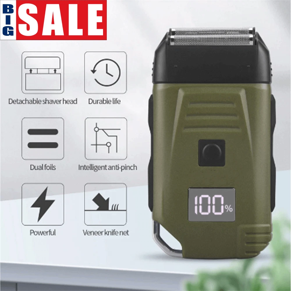 Features: Rechargeable, Adjustable Speed, Built-In Moisturizing System, Cleaning Indicator, Cordless, Cleaning System, Dual Voltage, Folding Blade, Hair Trimmer Option, LED Display, Low Battery Indicator, Pivoting Head, Quick Charging Time, Replacement Blades, Smartlight, Swivel Cord, Travel Case, Travel Size, Washable, Waterproof, Wet/Dry Brand: Unbranded Country/Region of Manufacture: China Department: Men Motor Type: Rotary Type: Shaver Kit Item Length: 2 in Head Type: Beard Trimmer Body Area: Back, Body, Chest, Ear, Face, Neck, Nose, Pubic Item Weight: 1 lb Power Source: USB Charging Number of Heads: 1 Color: Black