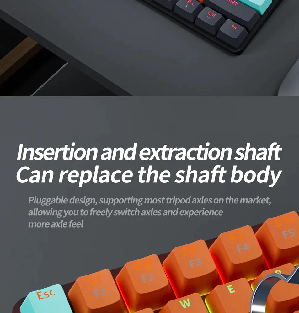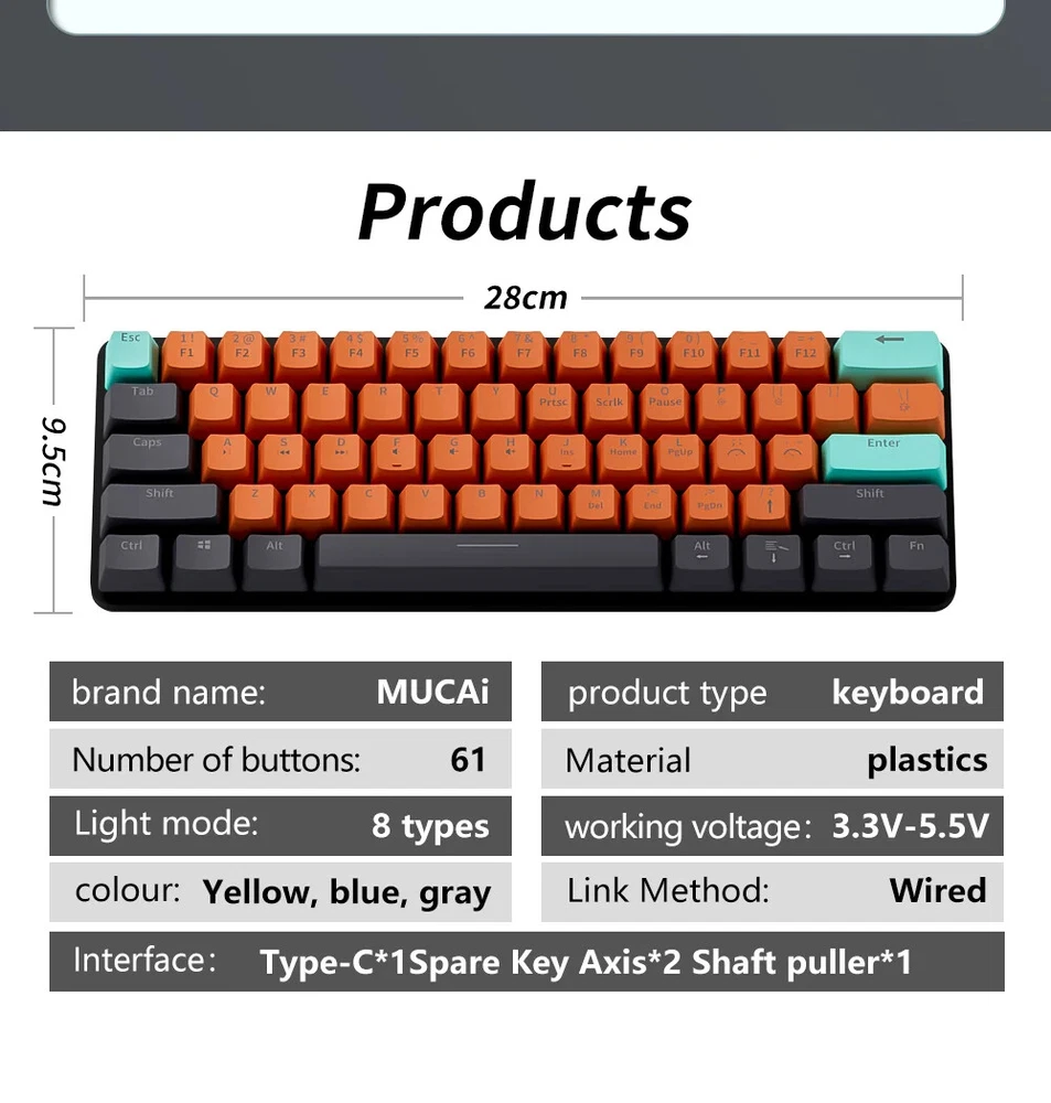 MKA610 has a compact 61 key. Small and portable. There are also pluggable cables. Hot-Swappable Red Switches: Most quiet mechanical switch, linear and soft key travel makes every click easy to register. Hot-swappable with other Redragon switches. Made to last with switches rated for 50 million keypresses