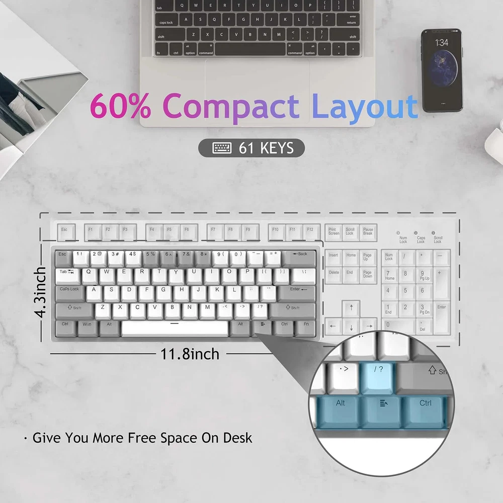 F3261 RGB effect USB Mini Mechanical Gaming Keyboard Red Switch 61 Keys Wired Separated detachable cable for Mac Windows AULA F3261 RGB 61Keys Mechanical Keyboard 61 key wired mechanical keyboard 29 RGB backlight modes side RGB lighting Hot swappable keyboard compatible with 3-pin or 5-pin switch Ergonomic design 3 Levels of Ergonomic Height Anti-Slip Foot Mat System Win